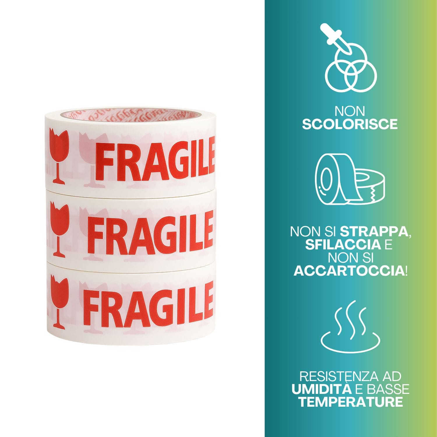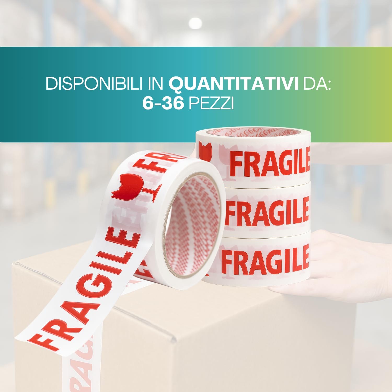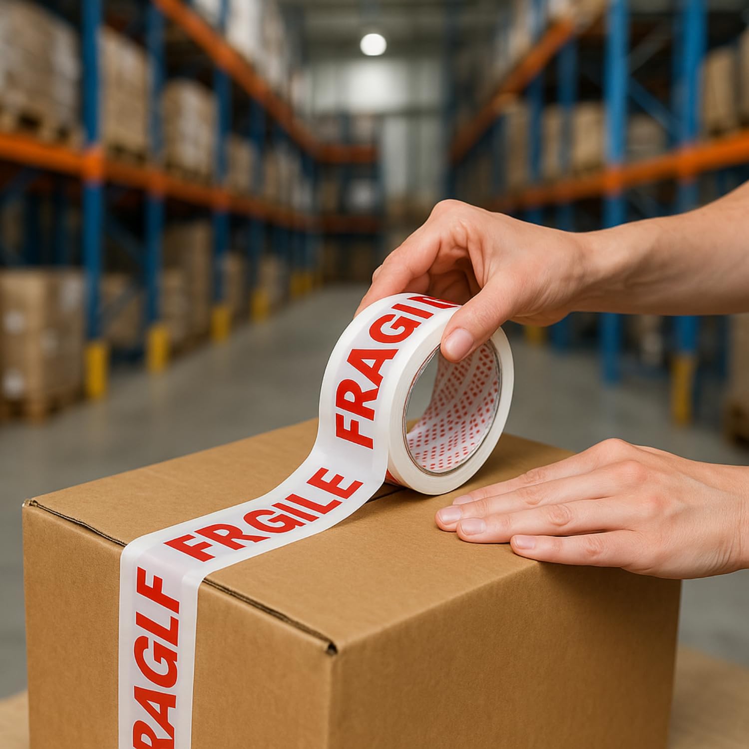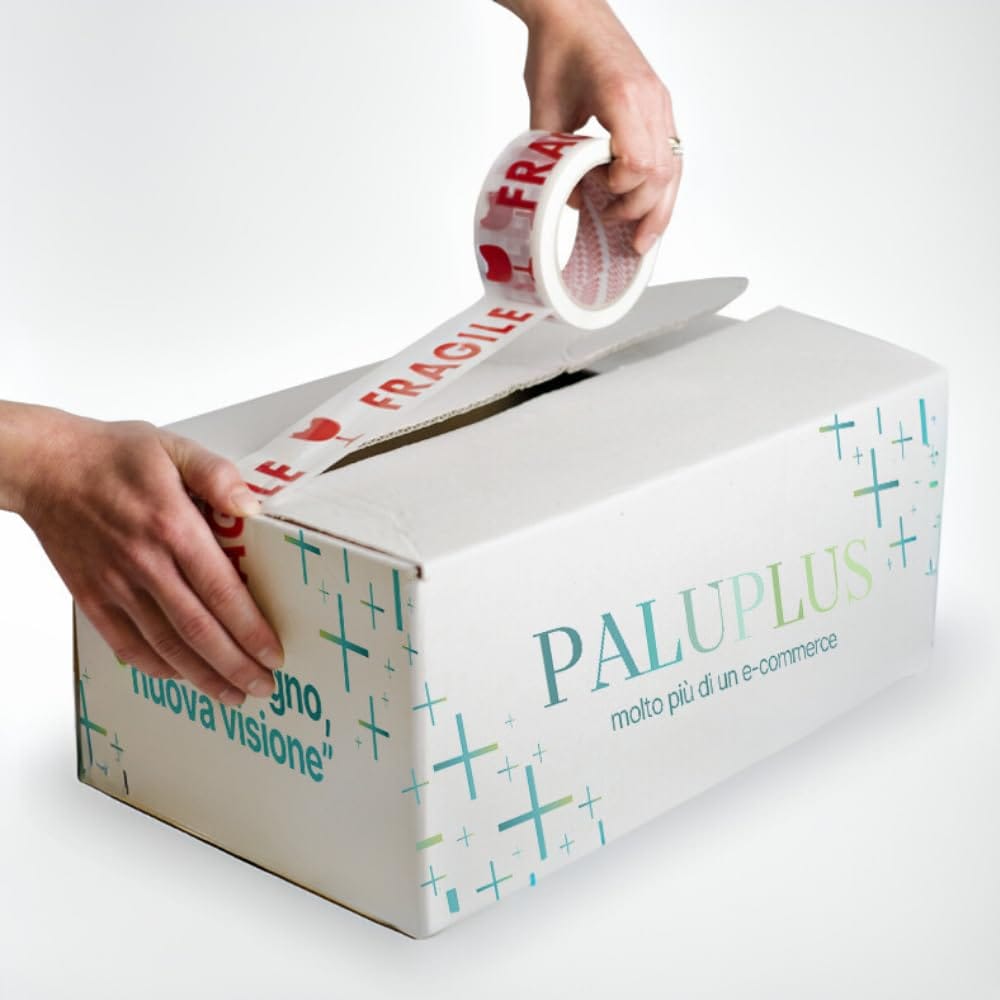 6 Rotoli di Nastri adesivo FRAGILE per imballaggio da 50 mm x 66 metri - Nastro bianco con stampa rossa