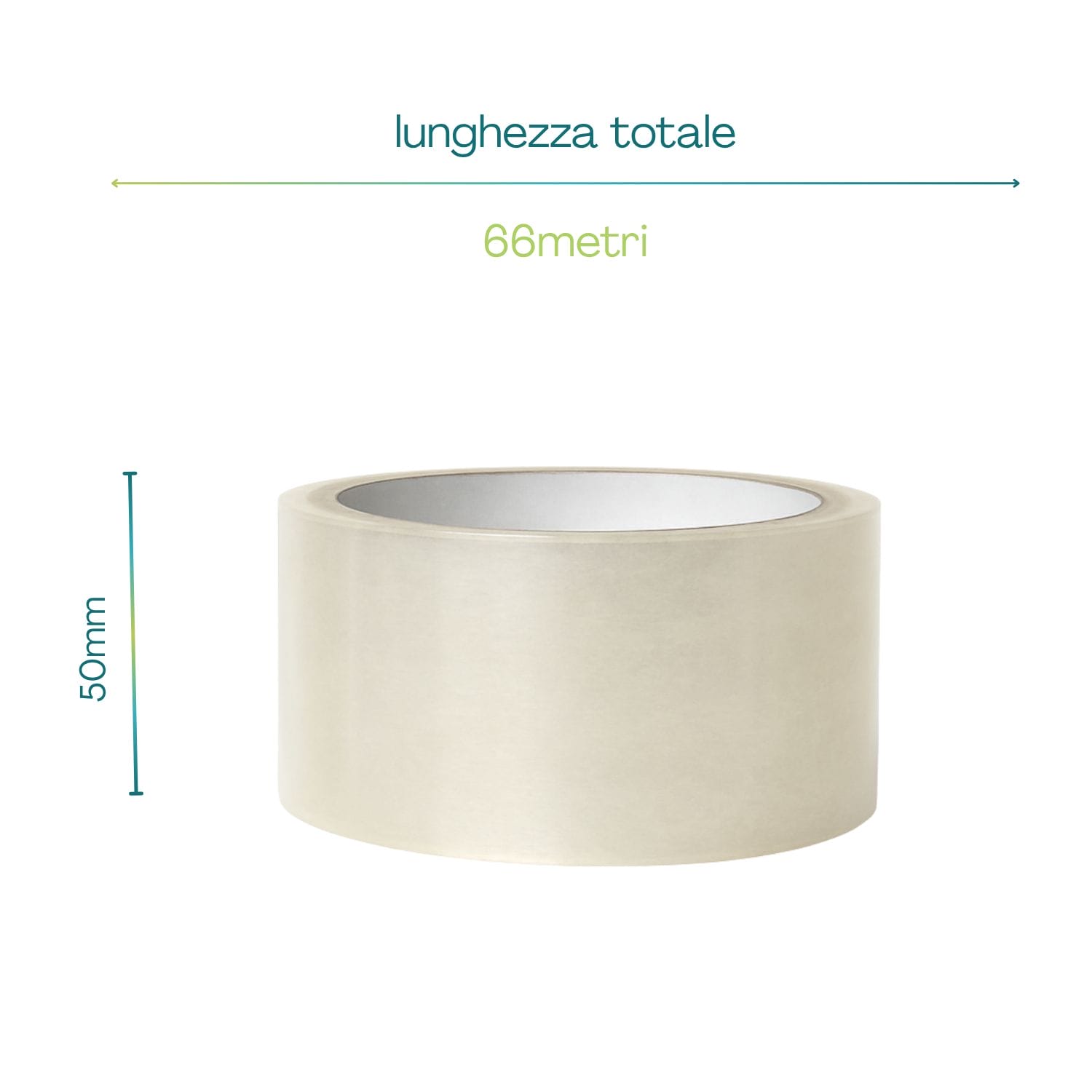 36 Nastri per imballaggio trasparente tipo silenzioso - Mis. mm 50x66 metri - 6 confezioni da 6 rotoli di nastro adesivo per pacchi