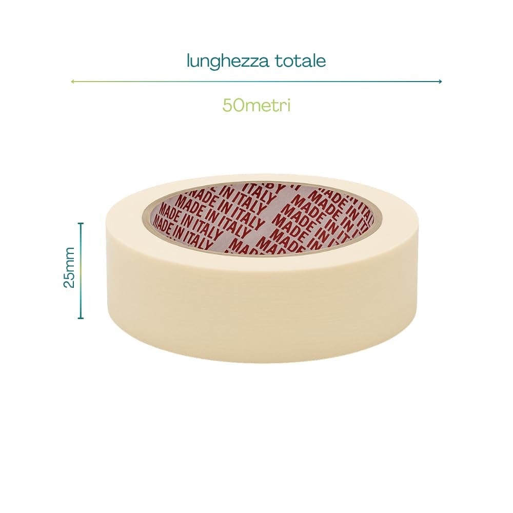 72 Rotoli nastro adesivo gommato in carta gommata per mascheratura mis. 25 mm x 50 metri