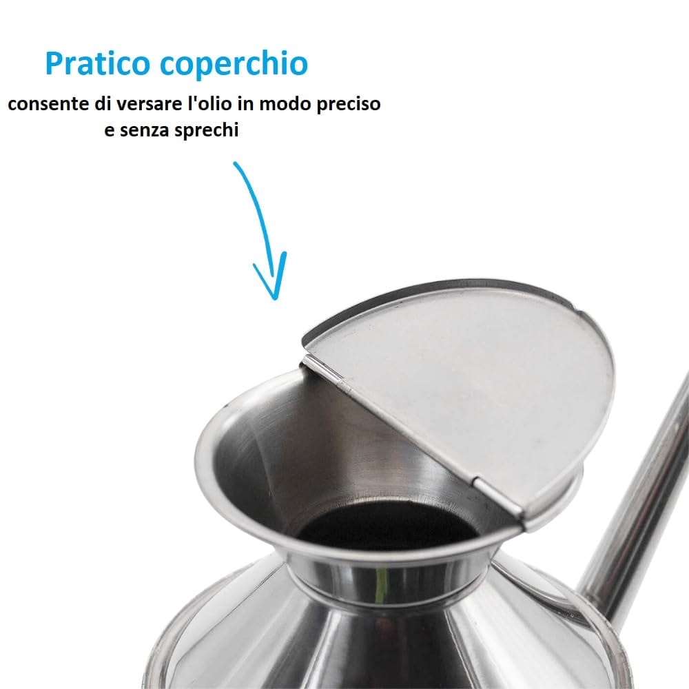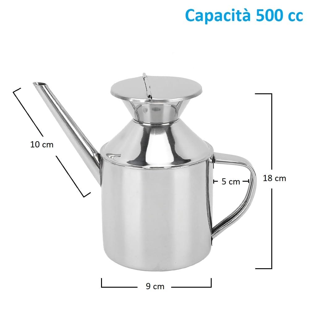 Oliera in acciaio da 500 cc con beccuccio salvagoccia da cucina - Misura 18x9x15 cm - Porta olio per la tavola
