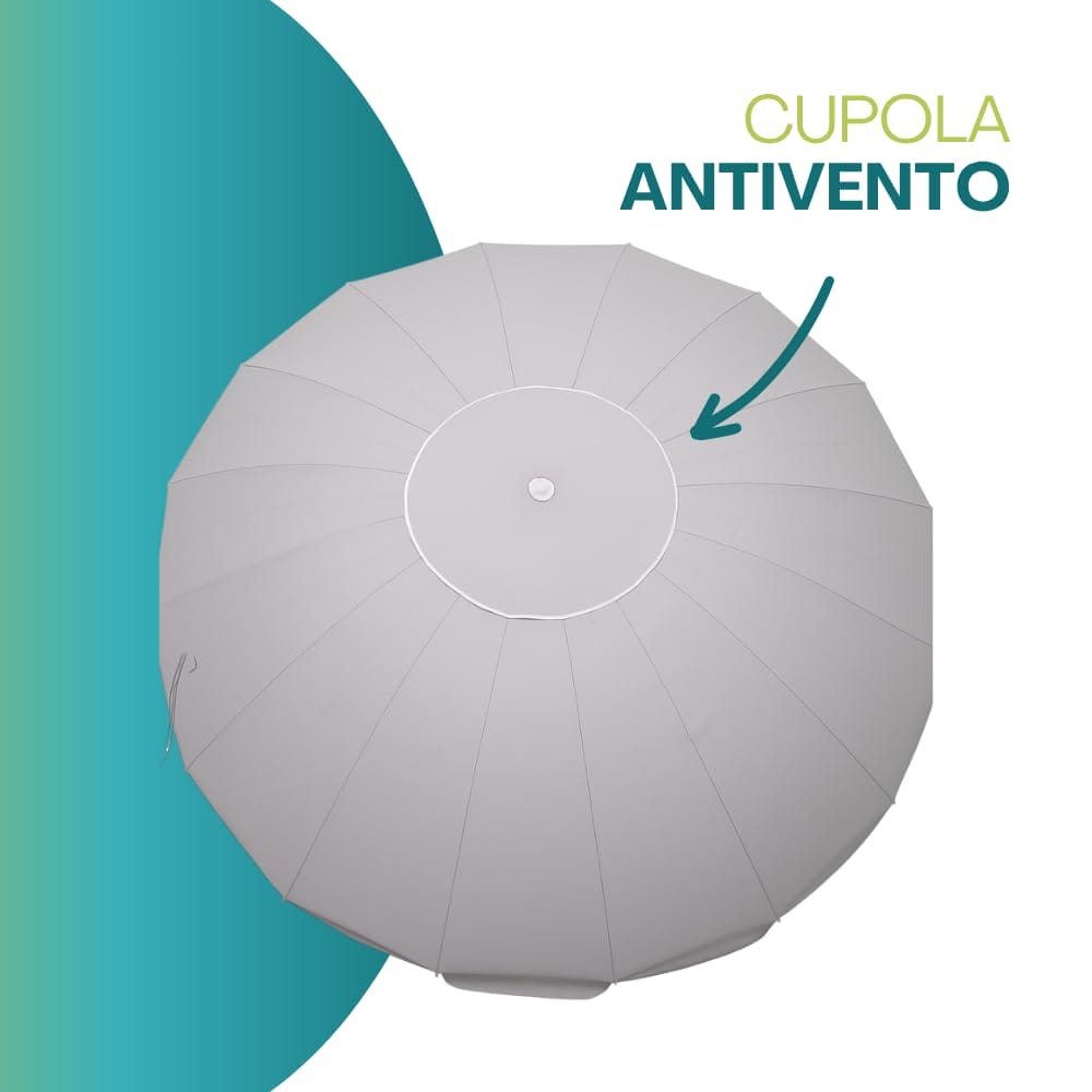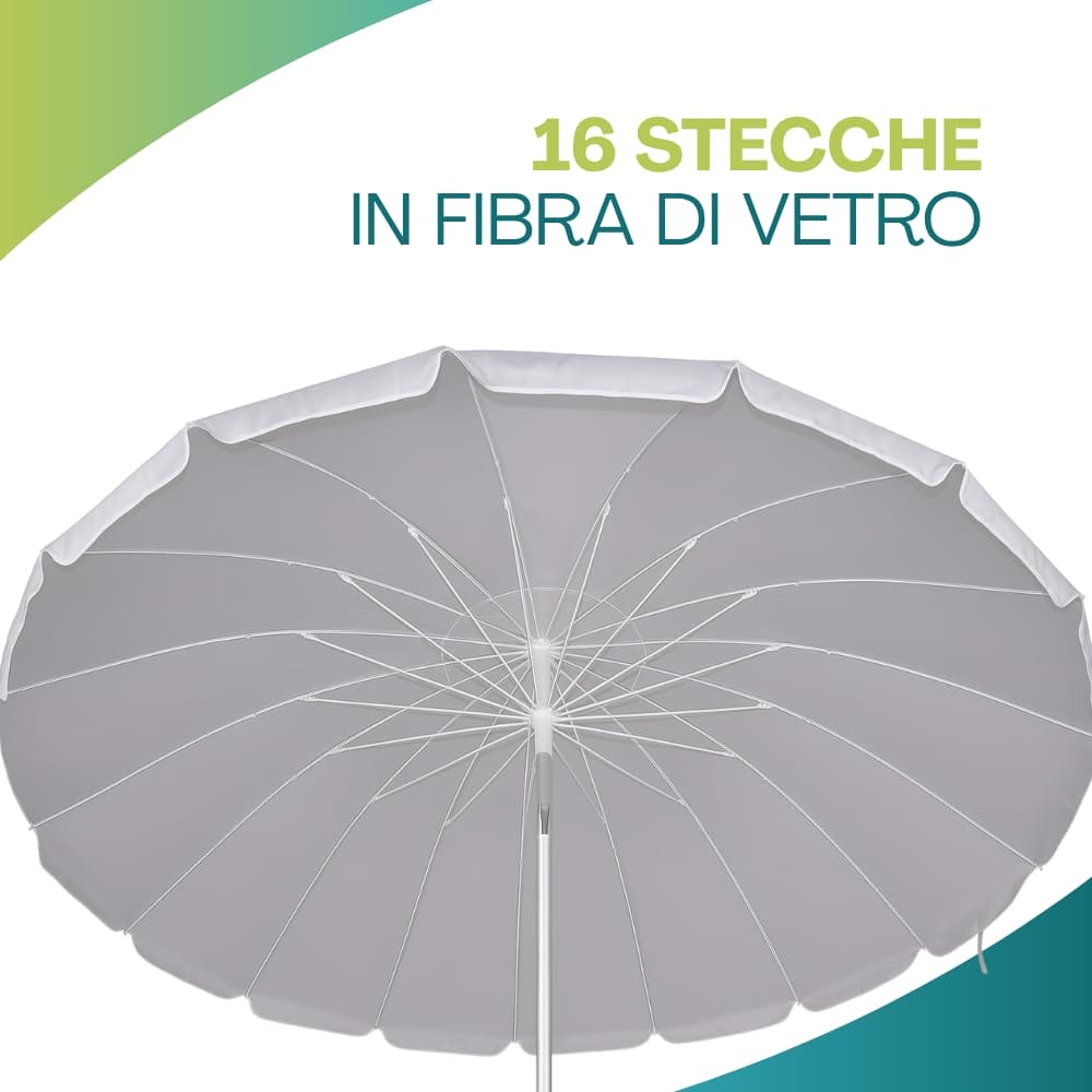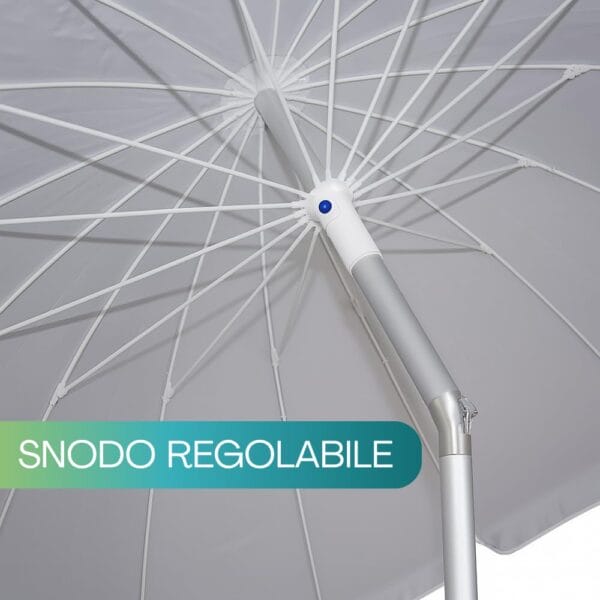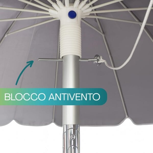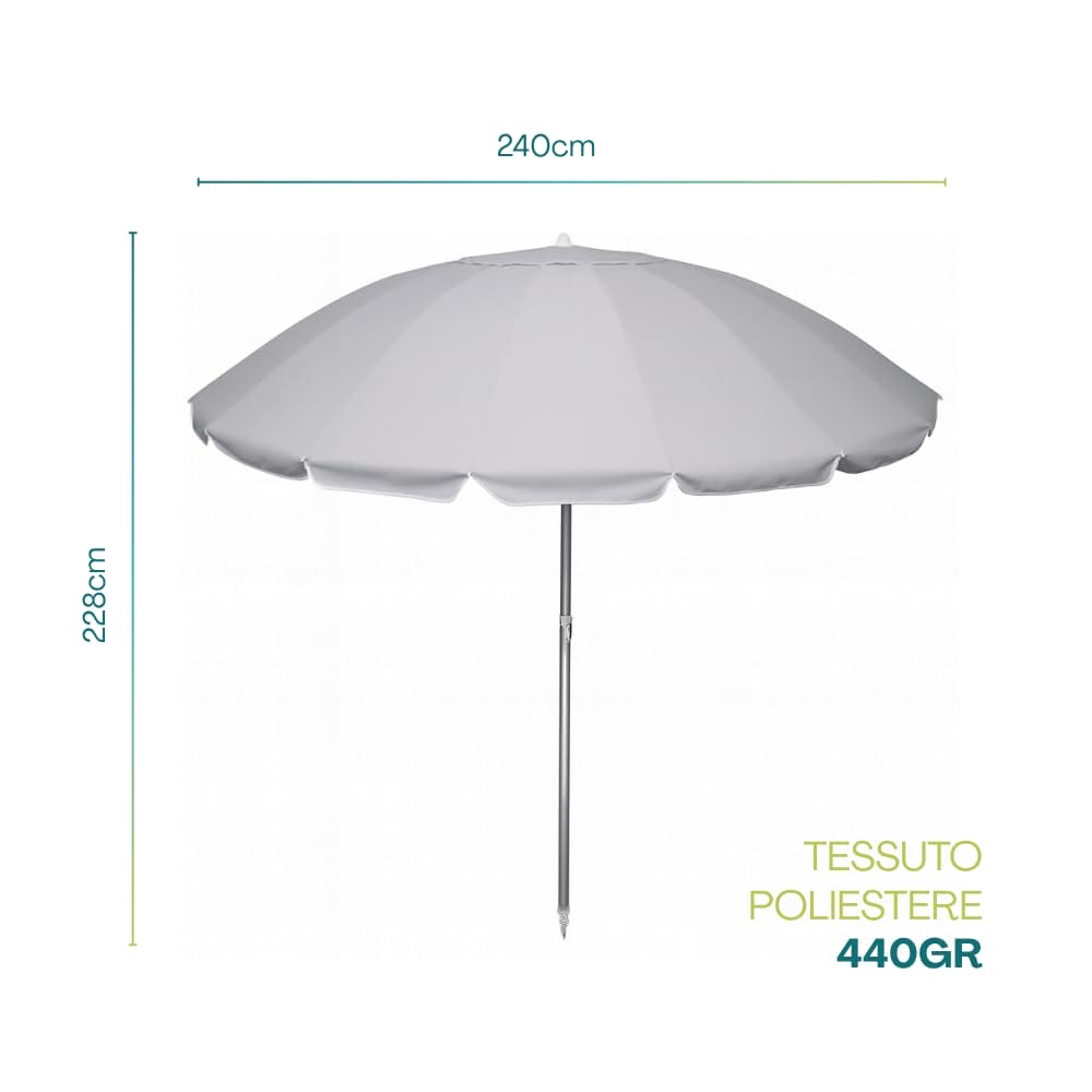 Ombrellone da Spiaggia con Cupola Antivento - Diametro 240 cm con 16 Stecche in Fibra Vetro - Ombrello Mare con Sacca Tracolla - GRIGIO