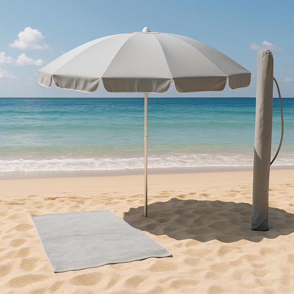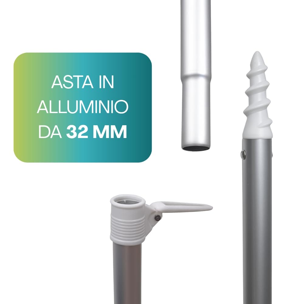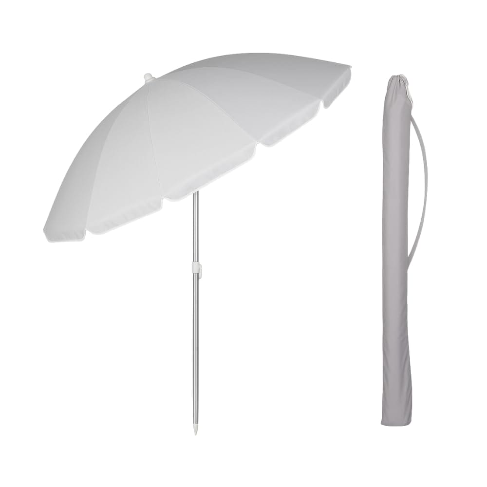 Ombrellone da Spiaggia con Cupola Antivento - Diametro 240 cm con 16 Stecche in Fibra Vetro - Ombrello Mare con Sacca Tracolla - GRIGIO