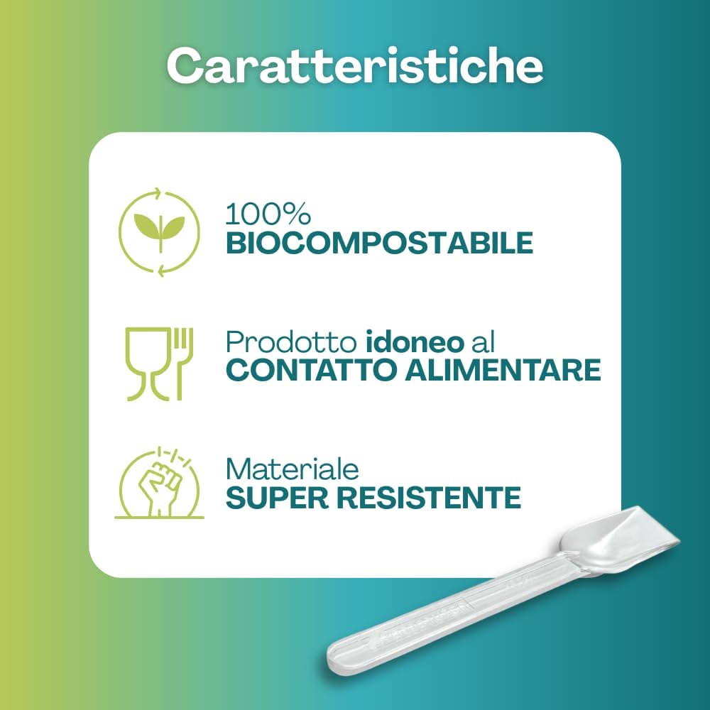 1 kg di Palettine per gelato da 10 cm - Cucchiaino trasparente compostabile da gelateria - 1 confezione da 1 Kg