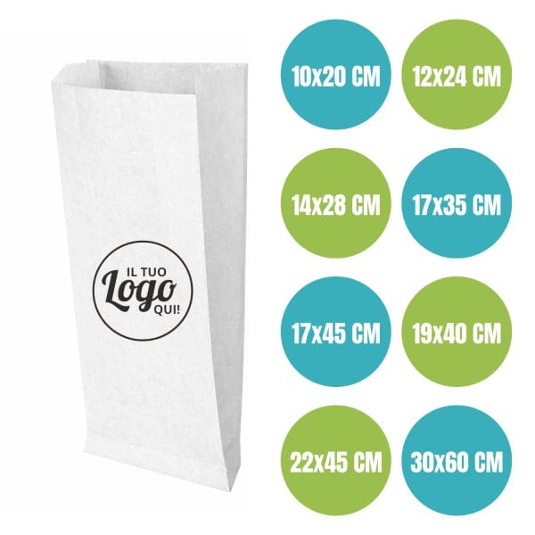 Sacchetti in carta kraft bianca personalizzabili con logo aziendale - Idonei al contatto alimentare - Ideali per aumentare la visibilità del tuo brand nel settore food