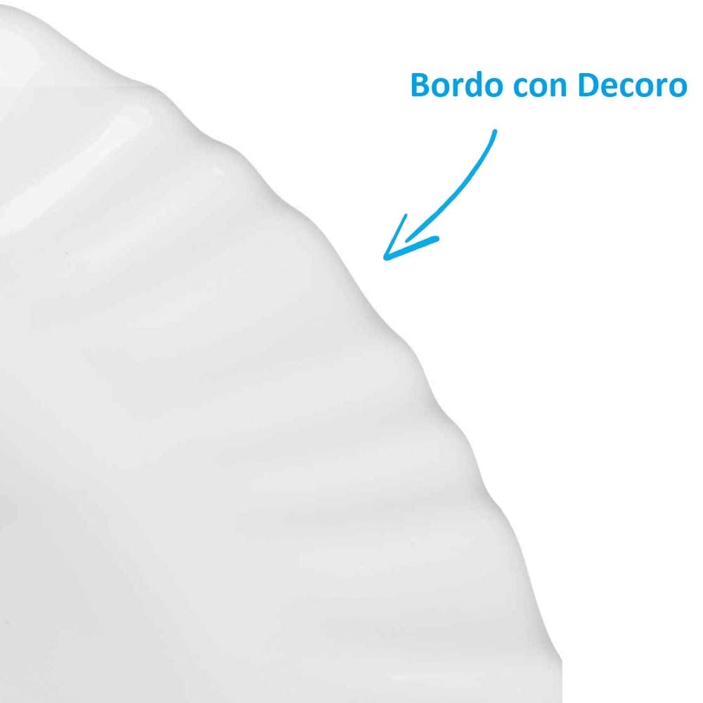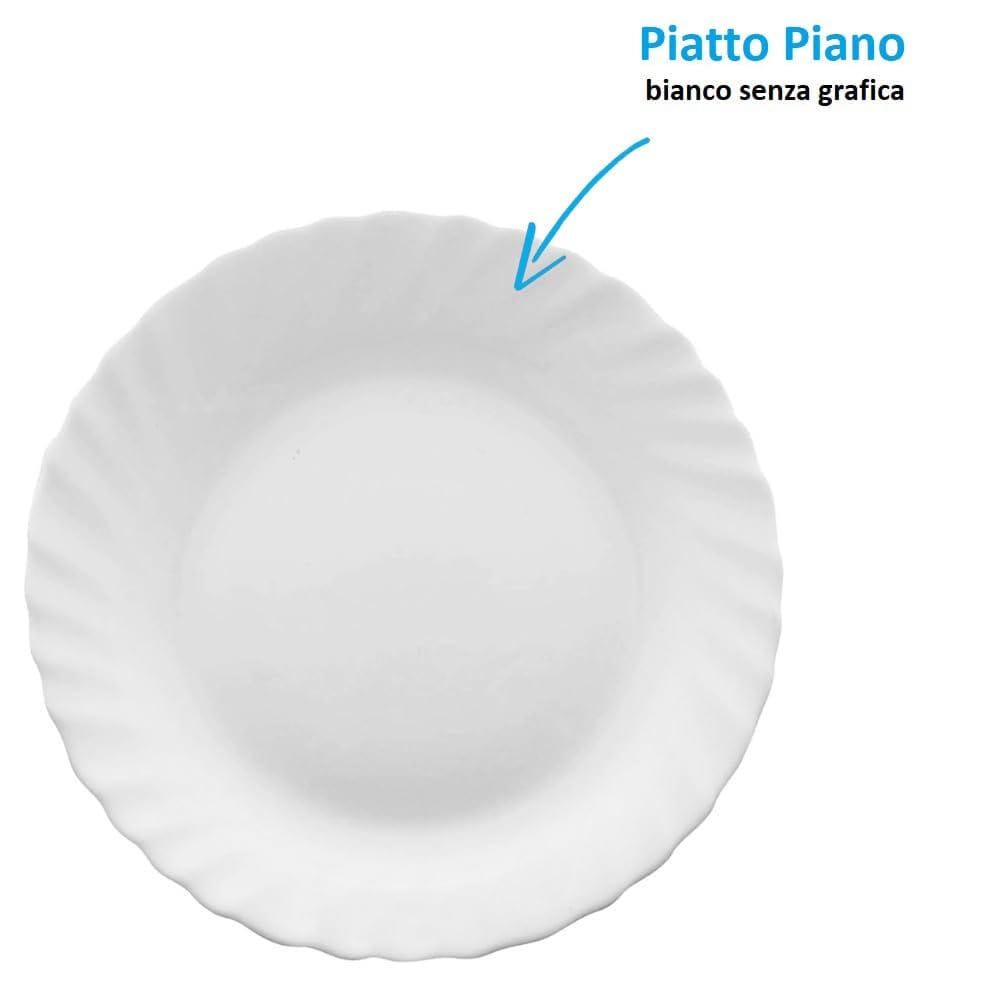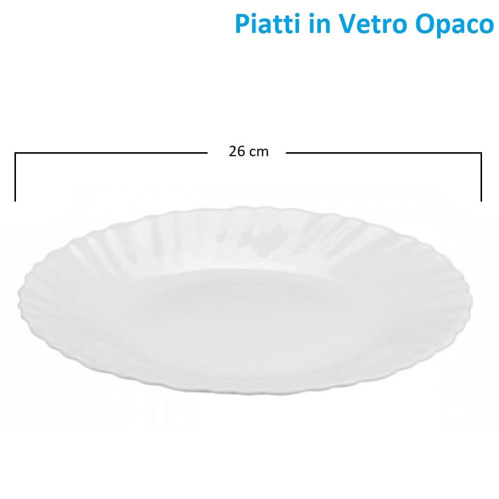 Set 6 piatti piani in vetro opaco bianco - Diametro 26 e Altezza 2 cm - Bordo con decoro, lavabili in lavastoviglie e adatti al microonde