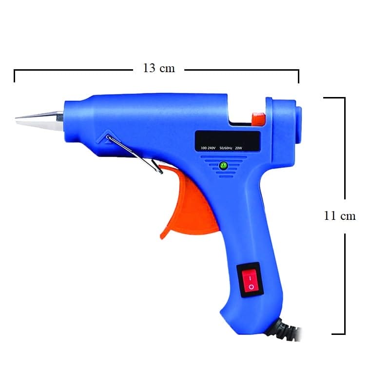 Pistola Colla a Caldo da 20W ( 13x11cm ) + 30 Bastoncini colla 070/095 - Mini Pistola incollatrice per stick lunghi 18cm