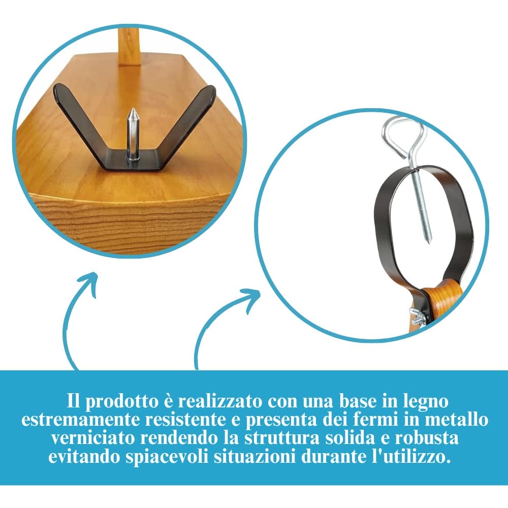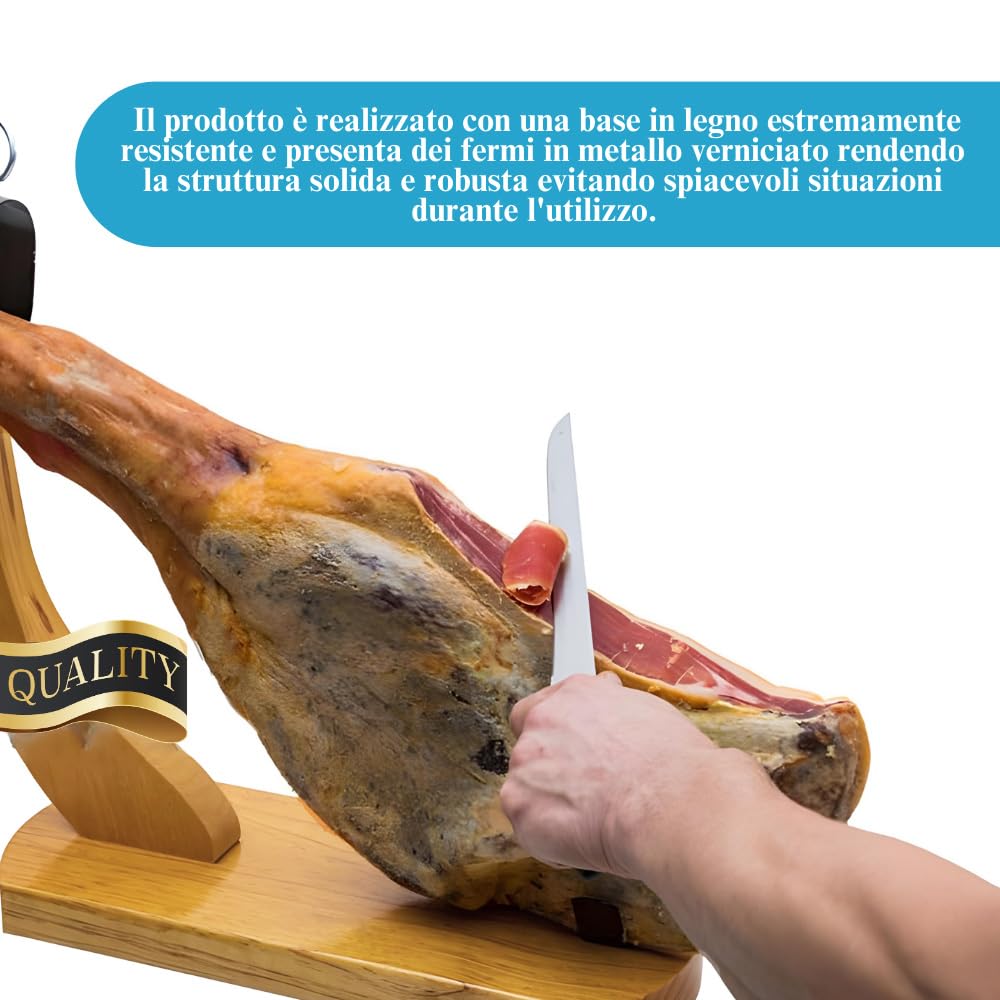 Ferma Prosciutto in Legno con morse in ferro per taglio preciso a mano - Misura 40x16,5x40 cm - Modello Gondola