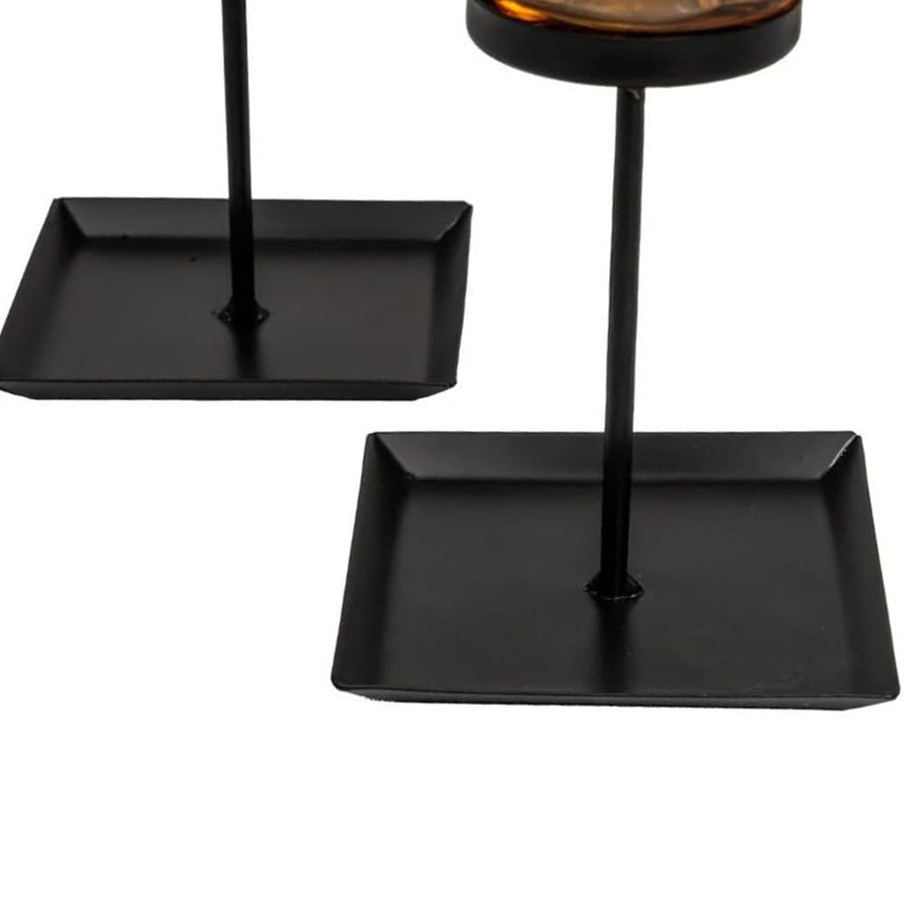 Set da 2 portacandele a colonna, misura 9x9x17/22 cm, struttura in metallo nero con bicchiere in vetro per candela tea-light - 1 set da 2 pezzi