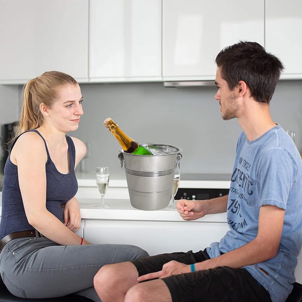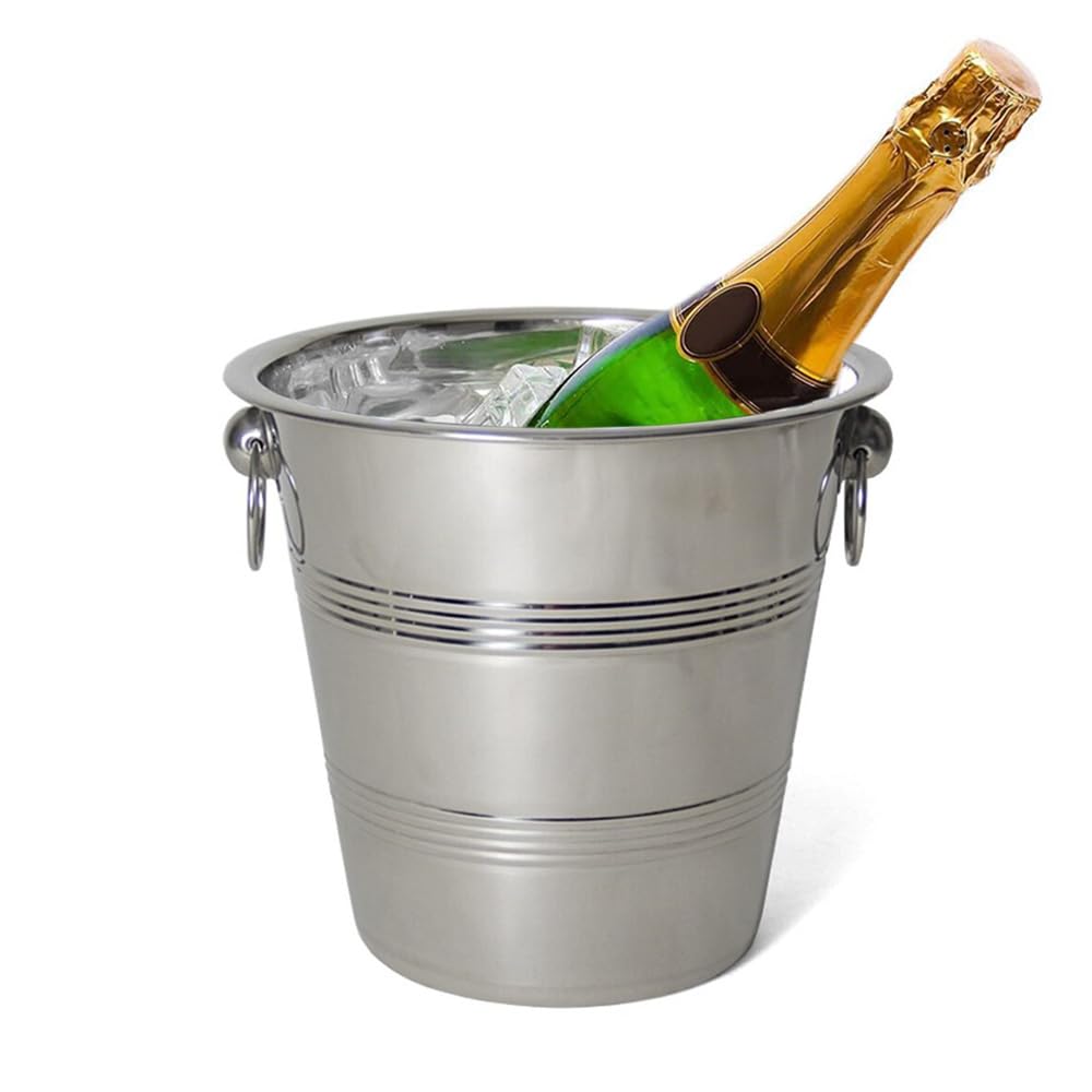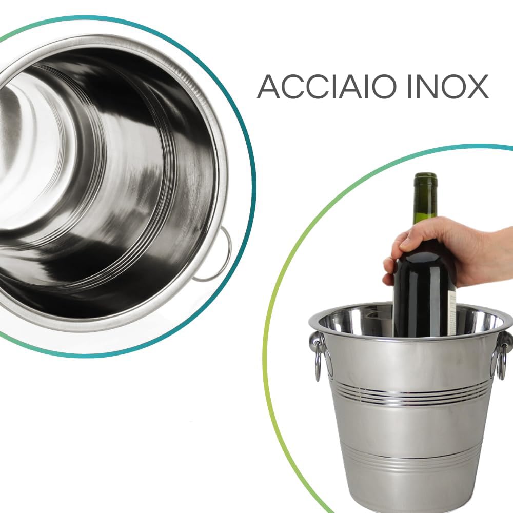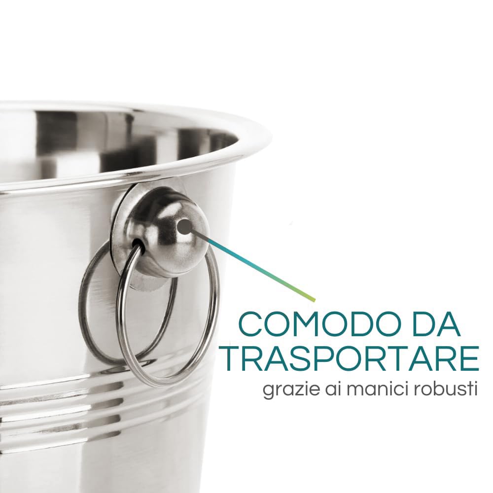 Secchiello Portaghiaccio in Acciaio Inox Grigio - Dimensioni 24x21 cm e capacità da 4 Litri – Portaghiaccio elegante con Maniglie per Vino e Champagne