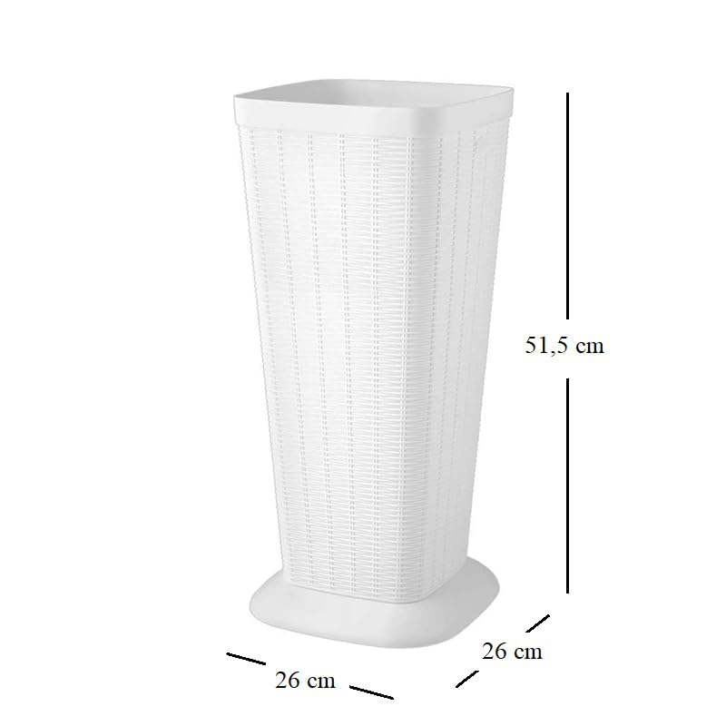 Portaombrelli in plastica alto effetto Rattan Struttura intrecciata Mis. 26x26x51,5 cm - Cesta rettangolare resistente per ombrelli - Bianco