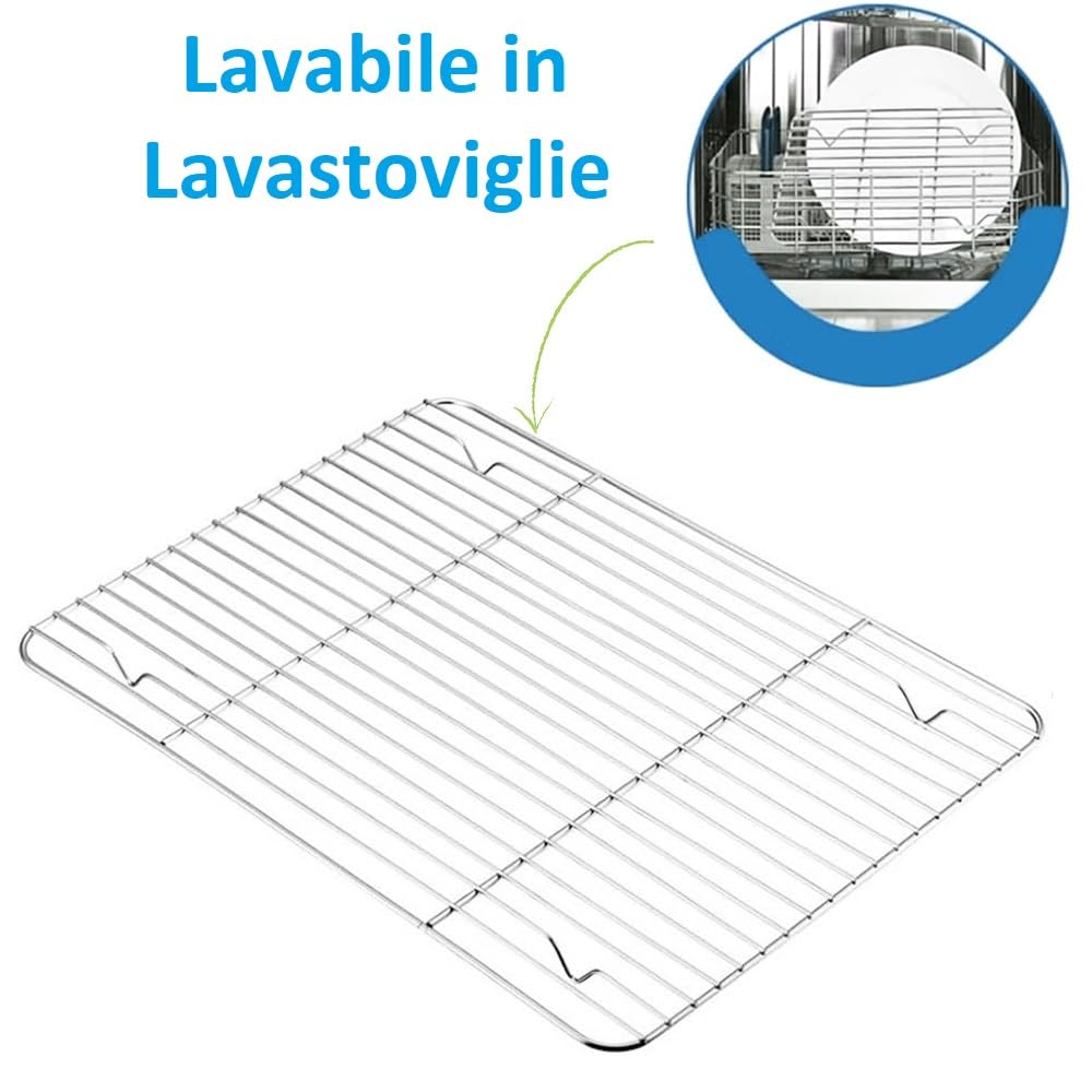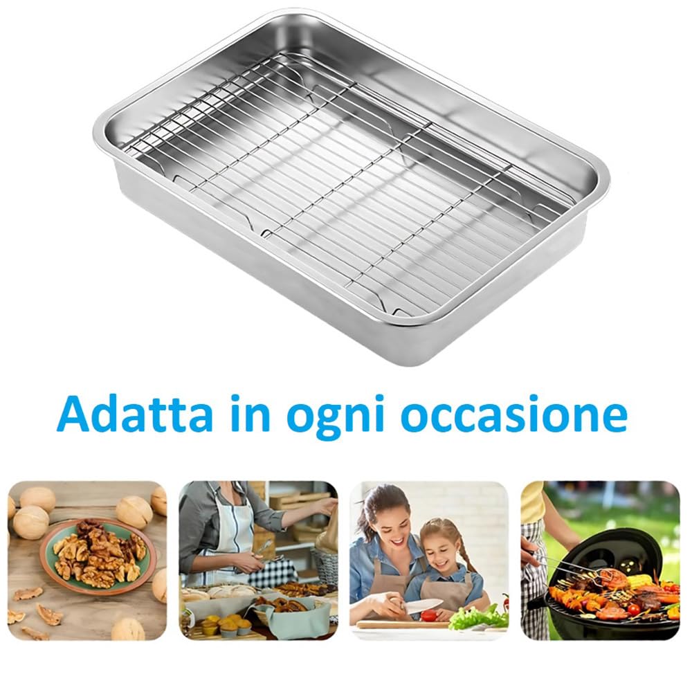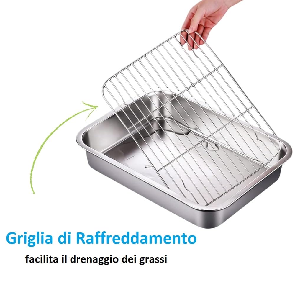 Teglia con griglia di raffreddamento rettangolare da forno alta - Gratella in acciaio inox da 38,5x27,5x7