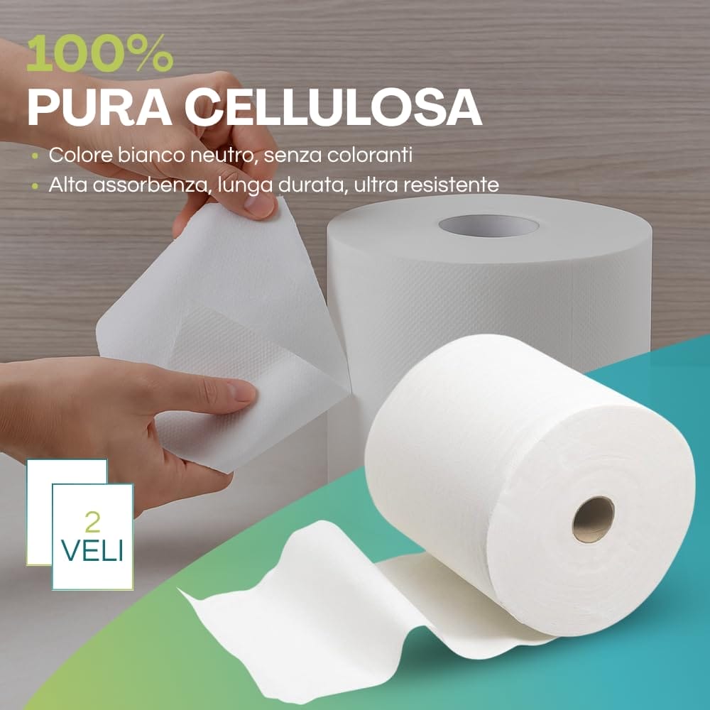 Bancale da 63 Coppie di rotoloni di carta in pura cellulosa a 2 veli da 800 Strappi (per rotolo) - Carta assorbente asciuga tutto formato Industriale per Aziende e Professionisti