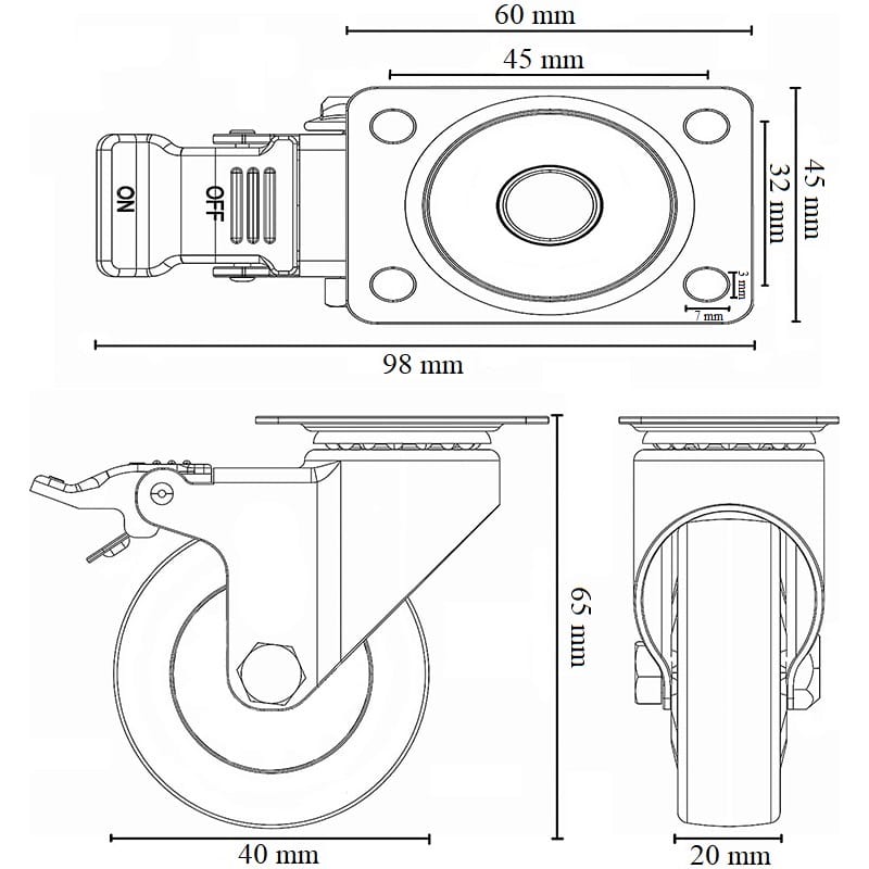 Set 4 Ruote girevoli per carrelli portata 180 kg