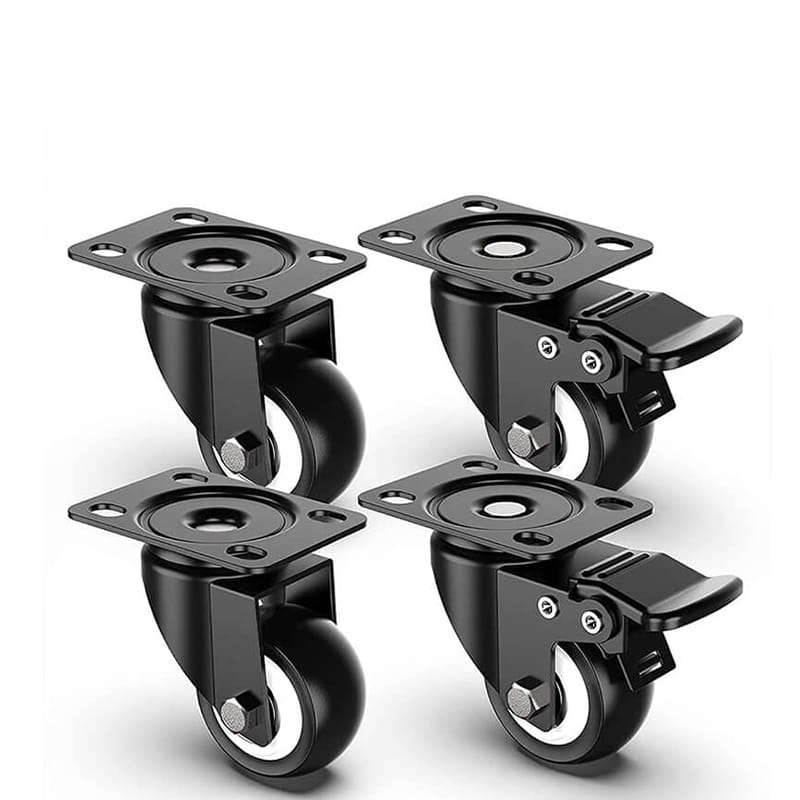 SET 4 Ruote per carrelli e mobili nere da 40 mm - Ruote piroettanti a 360° con portata max di 180 kg - 2 ruote con freno e 2 senza