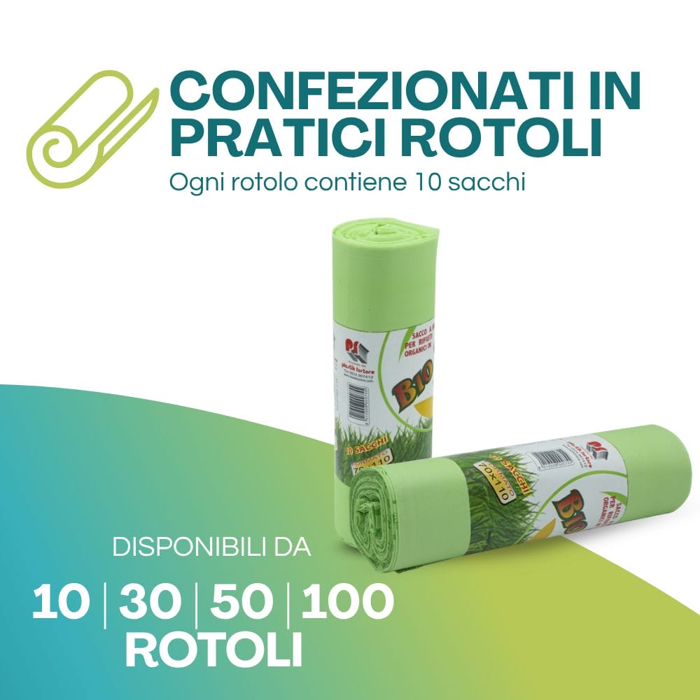 500 Sacchetti per organico Biodegradabili e Compostabili da 50x60 cm - Confezioni da 50 Rotoli