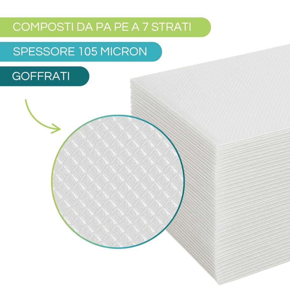 - Spessore 105 micron (3/4 più spessi delle normali buste di plastica)