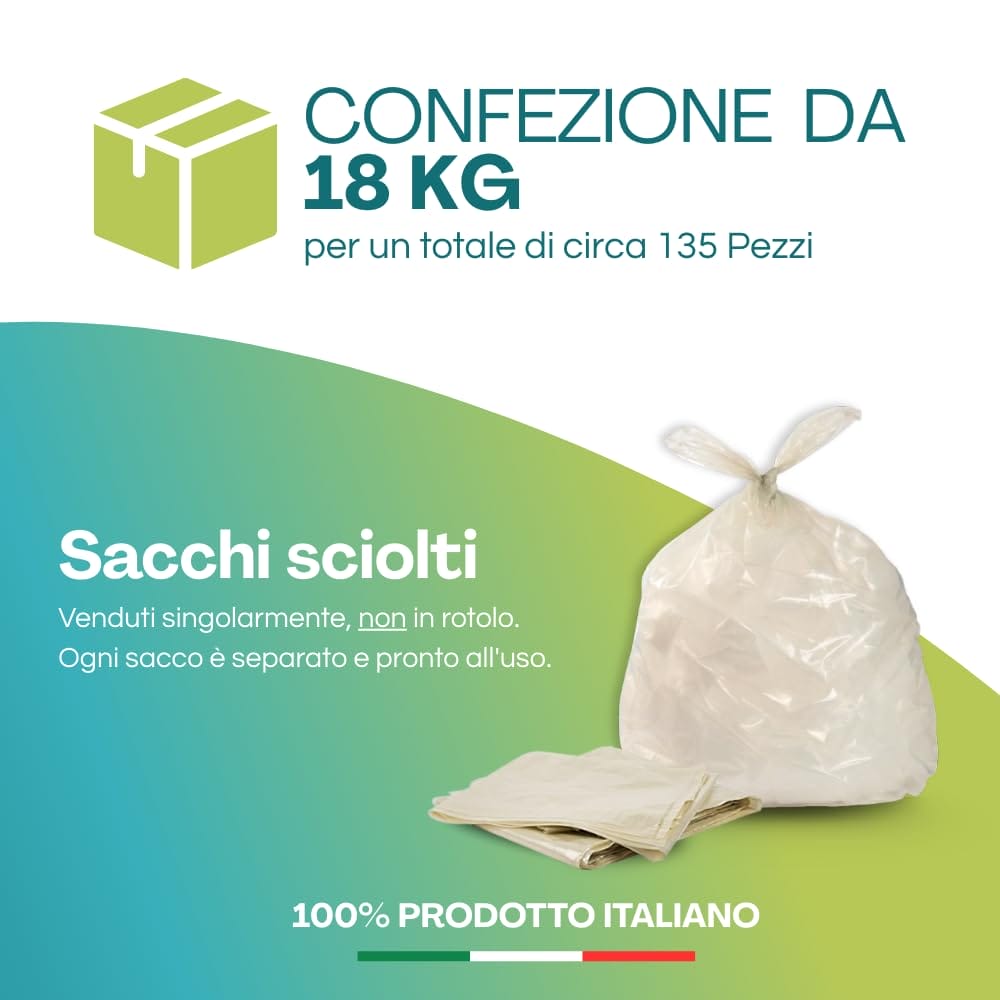 18 kg di Sacchi per la spazzatura grandi e resistenti color Ambra spessi 80 micron - Misura: 90x120 cm - Circa 135 Sacchi Sciolti