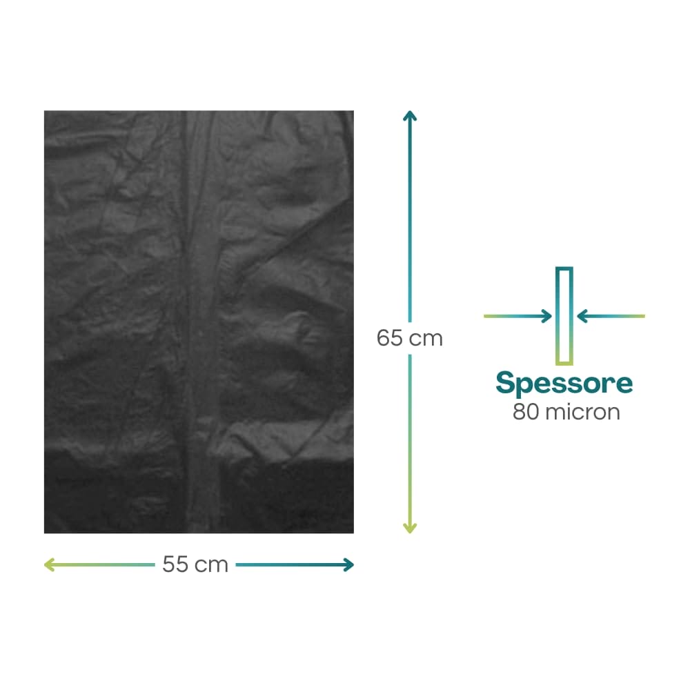 18 kg di Sacchi Neri Sciolti grandi e resistenti spessi 80 micron 55x65 cm - Circa 220 Sacchi