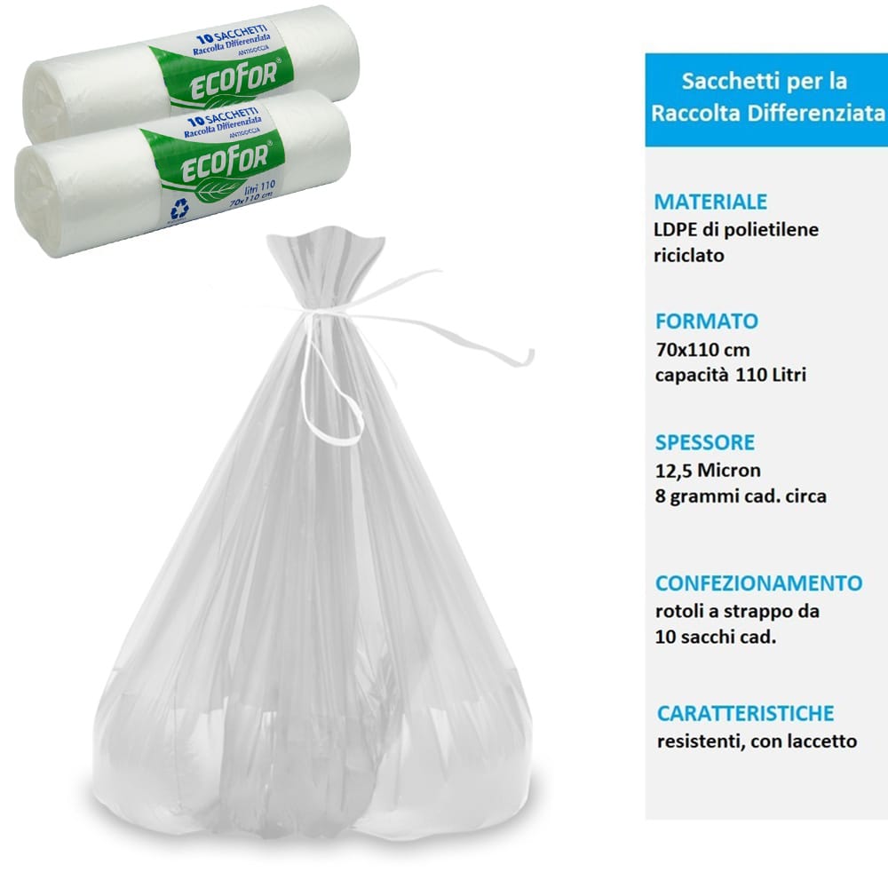 350 Sacchi Trasparenti per la raccolta differenziata da 70x110 cm in Plastica LD-PE - 35 Rotoli da 10 Sacchi