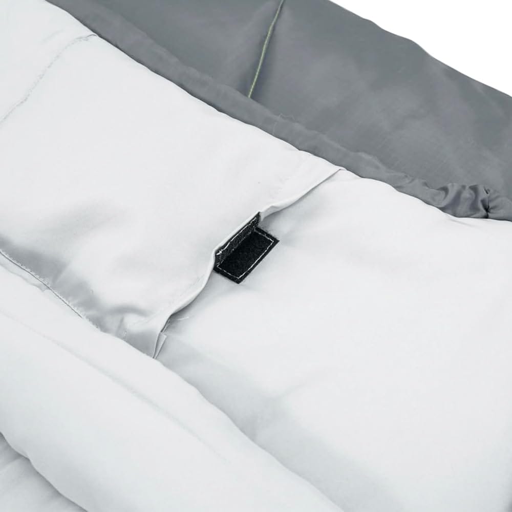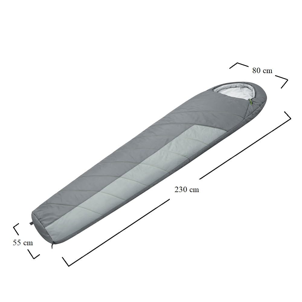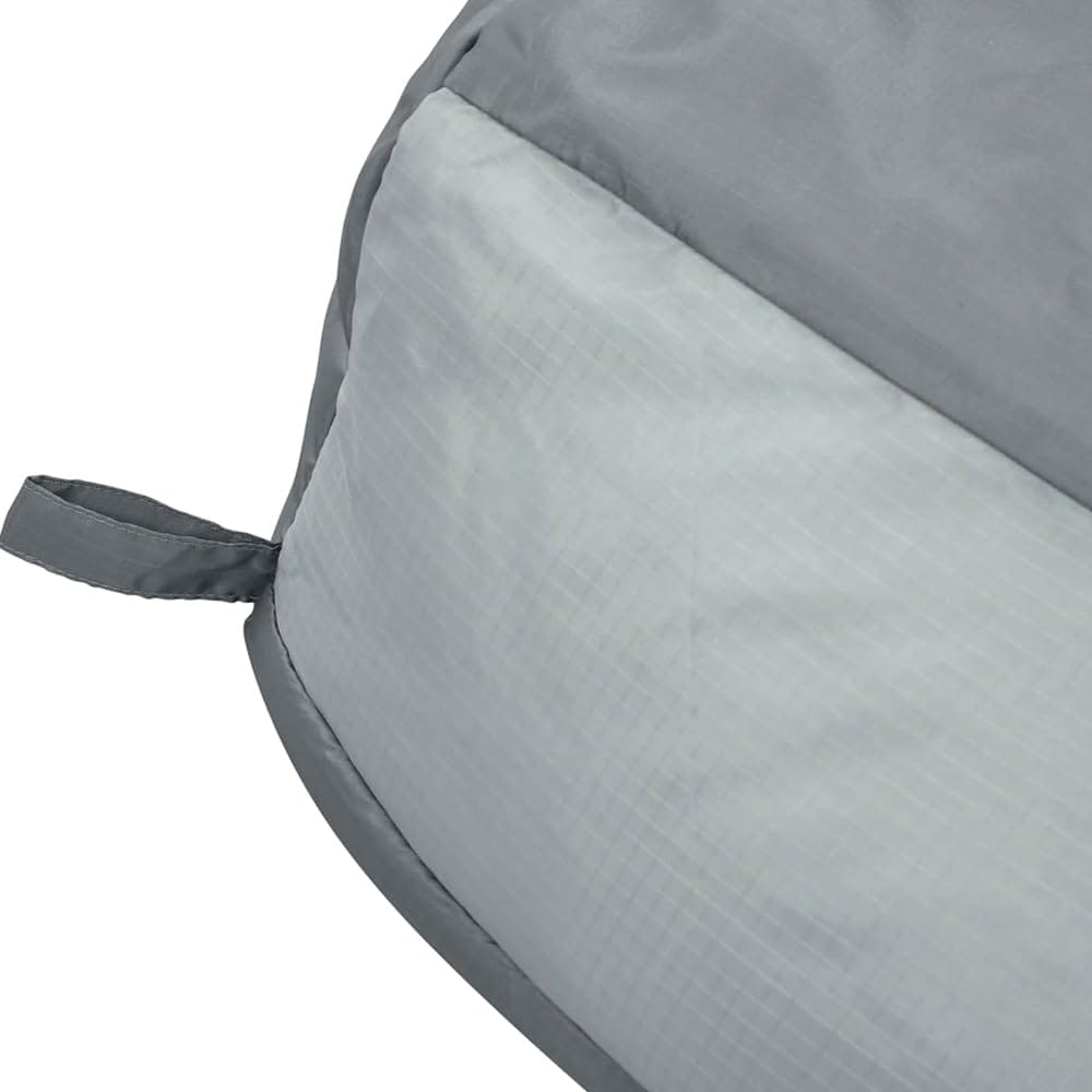 Sacco a pelo estivo di colore grigio 230x80x55 cm ideale per un'esperienza di campeggio confortevole e sicura, ovunque tu vada. Coniugando qualità, comfort e praticità. Imbottitura in fibra cava a doppio strato con cerniera bidirezionale antistrappo e tessuto isolante per garantire protezione dal freddo durante la notte.