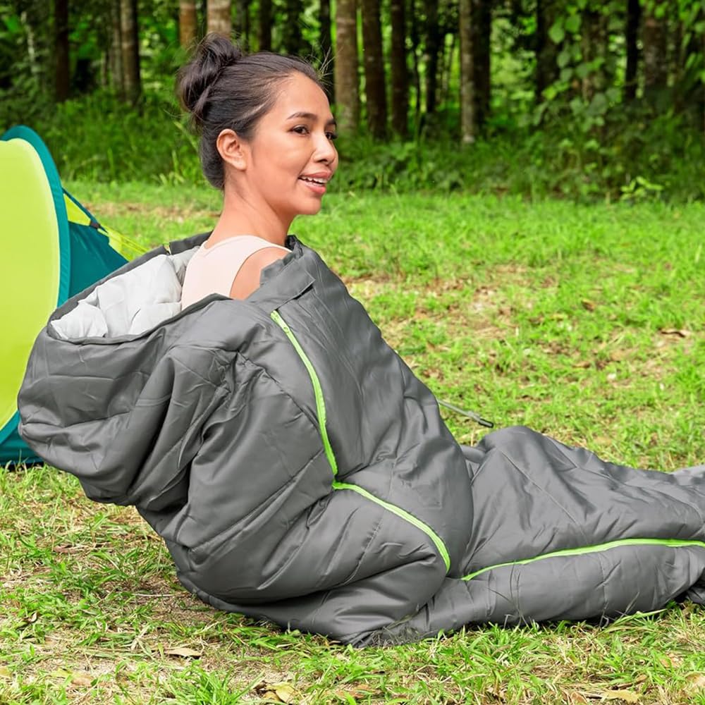 - FACILE DA TRASPORTARE - nonostante le sue dimensioni generose, il sacco a pelo per campeggio può essere facilmente comprimibile e riposto nel suo sacchetto per il trasporto, occupando poco spazio nello zaino o nel bagaglio durante i tuoi viaggi.