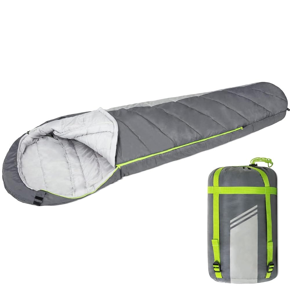 - TOP QUALITY - Sacco a pelo leggero realizzato con tessuti in Poliestere 210T e imbottitura in Fibra Cava a Doppio Strato. I materiali sono robusti e cuciture rinforzate, il nostro sacco a pelo è progettato per resistere a un uso prolungato e alle sollecitazioni dell'ambiente esterno, garantendoti una lunga durata nel tempo. Sacca per trasporto inclusa.