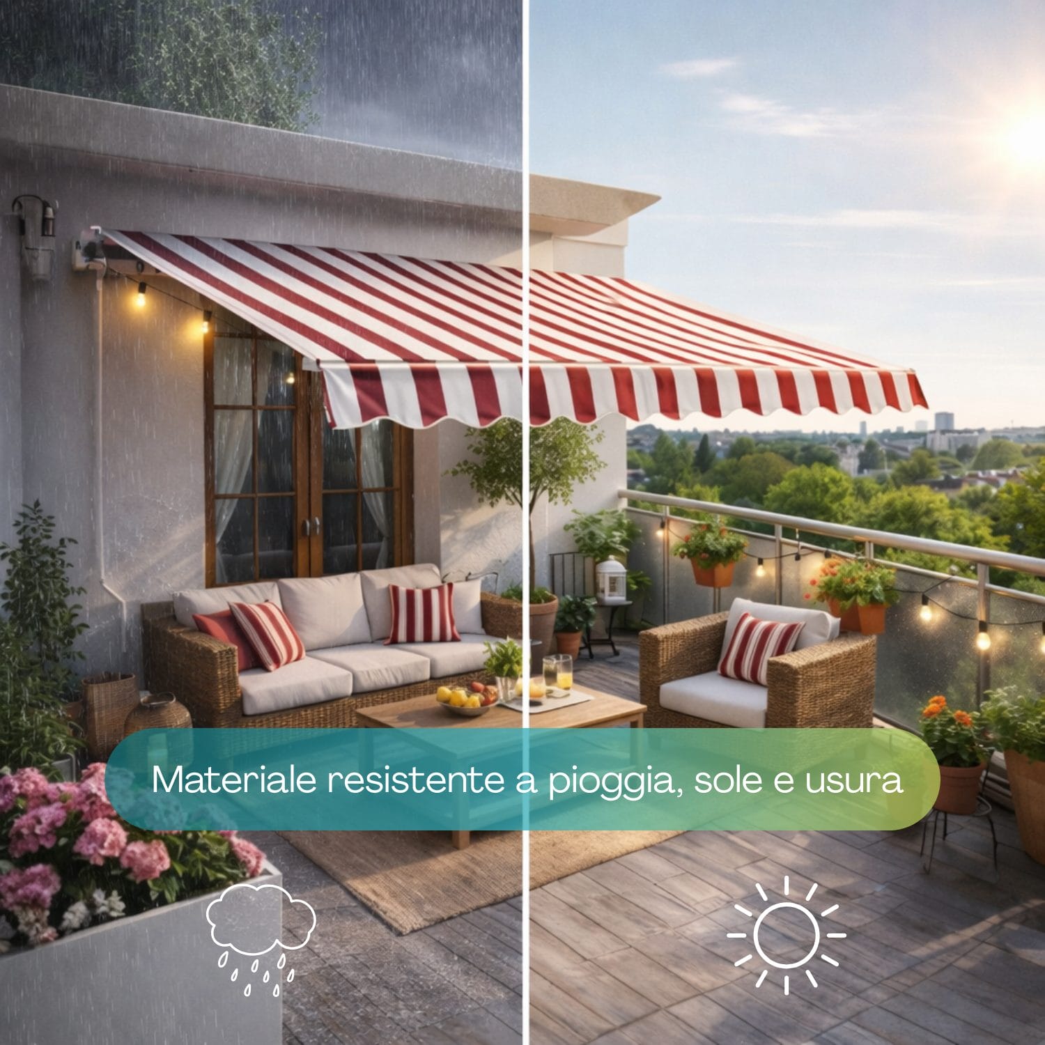 Proteggi e valorizza i tuoi spazi esterni con la tenda da sole avvolgibile a barra quadra 400x300 cm, una soluzione robusta, elegante e funzionale progettata per balconi, terrazzi e verande. Grazie alla struttura con barra quadra dal profilo stondato, questa tenda garantisce maggiore stabilità, sicurezza e una resa estetica moderna, perfetta per qualsiasi contesto abitativo o commerciale.