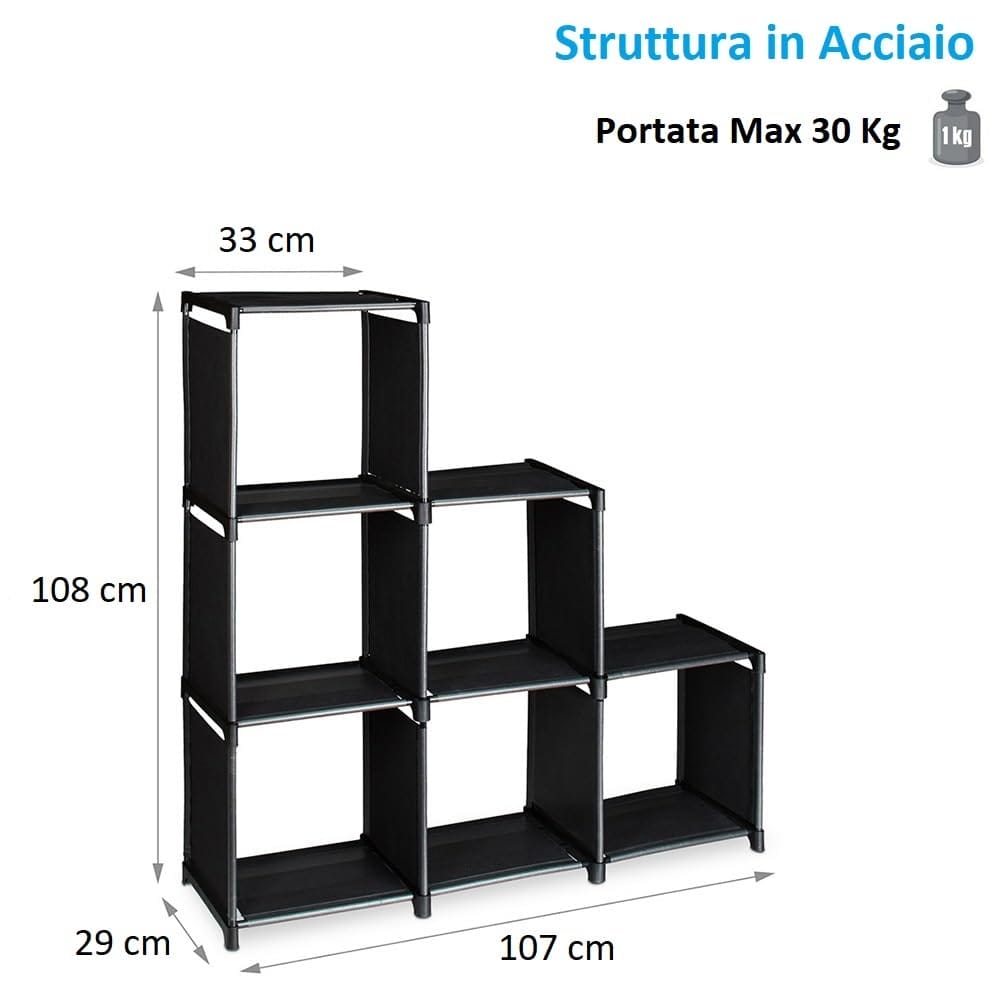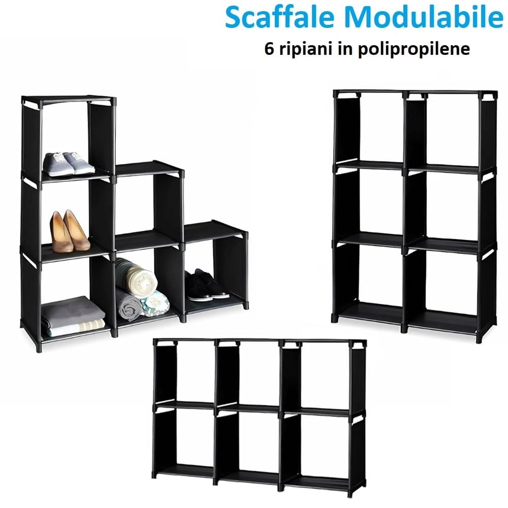 Il "Scaffale Modulabile a 6 Ripiani" è la soluzione ideale per chi cerca un portaoggetti versatile e resistente per casa o ufficio. Questo scaffale, di colore nero, misura 107x29x108 cm ed è progettato per adattarsi perfettamente a qualsiasi spazio grazie al suo design modulare. La struttura in acciaio assicura robustezza e durata, mentre i cubi impermeabili in plastica offrono una protezione ottimale per i tuoi oggetti personali.