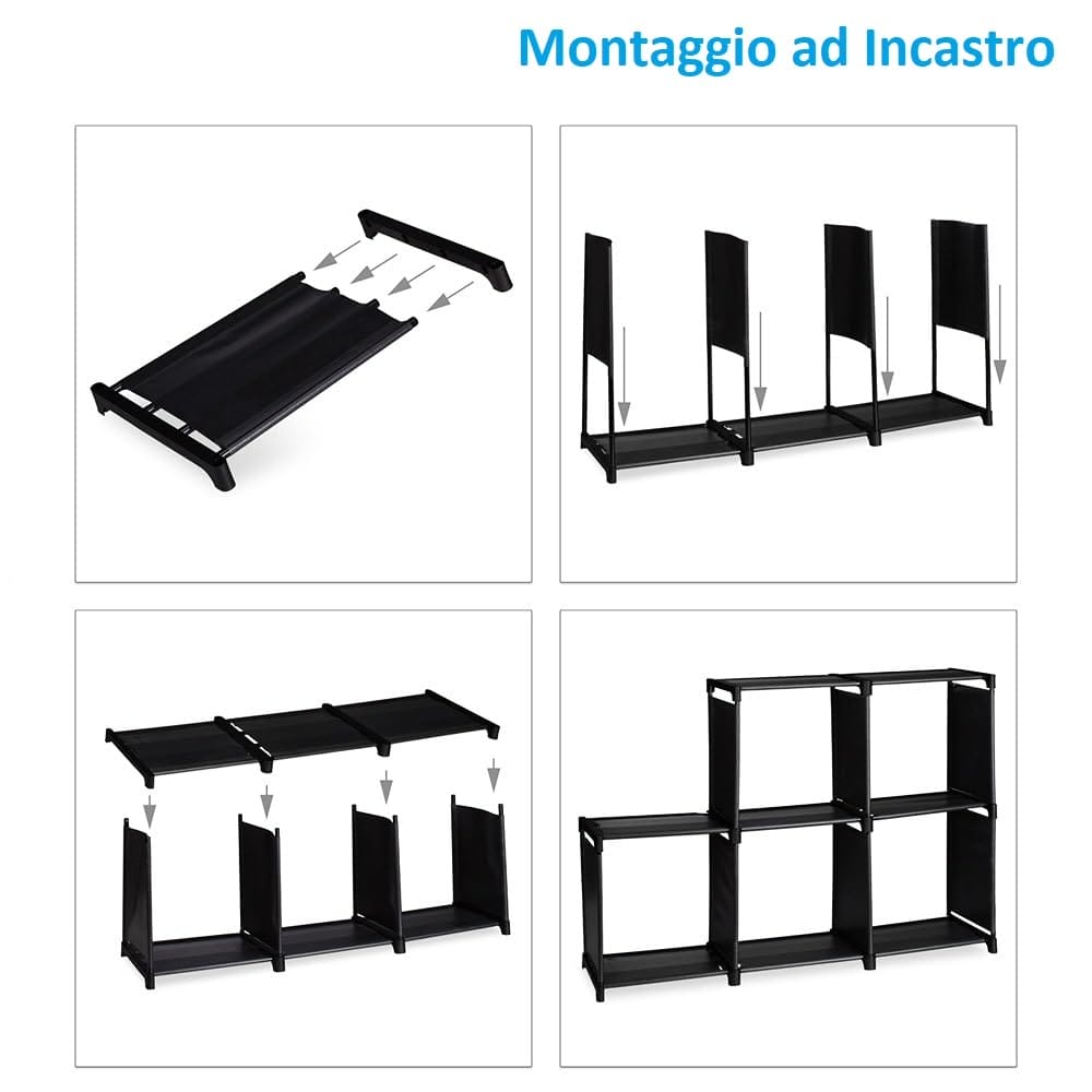Con una portata massima di 30 kg, puoi riporre libri, documenti o qualsiasi altro elemento essenziale con facilità. Il montaggio è semplice e veloce, consentendo di configurare l'armadio in diverse forme secondo le tue esigenze.