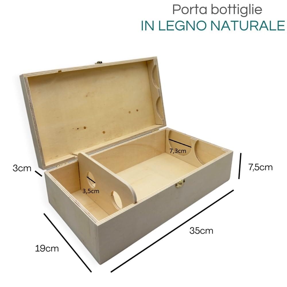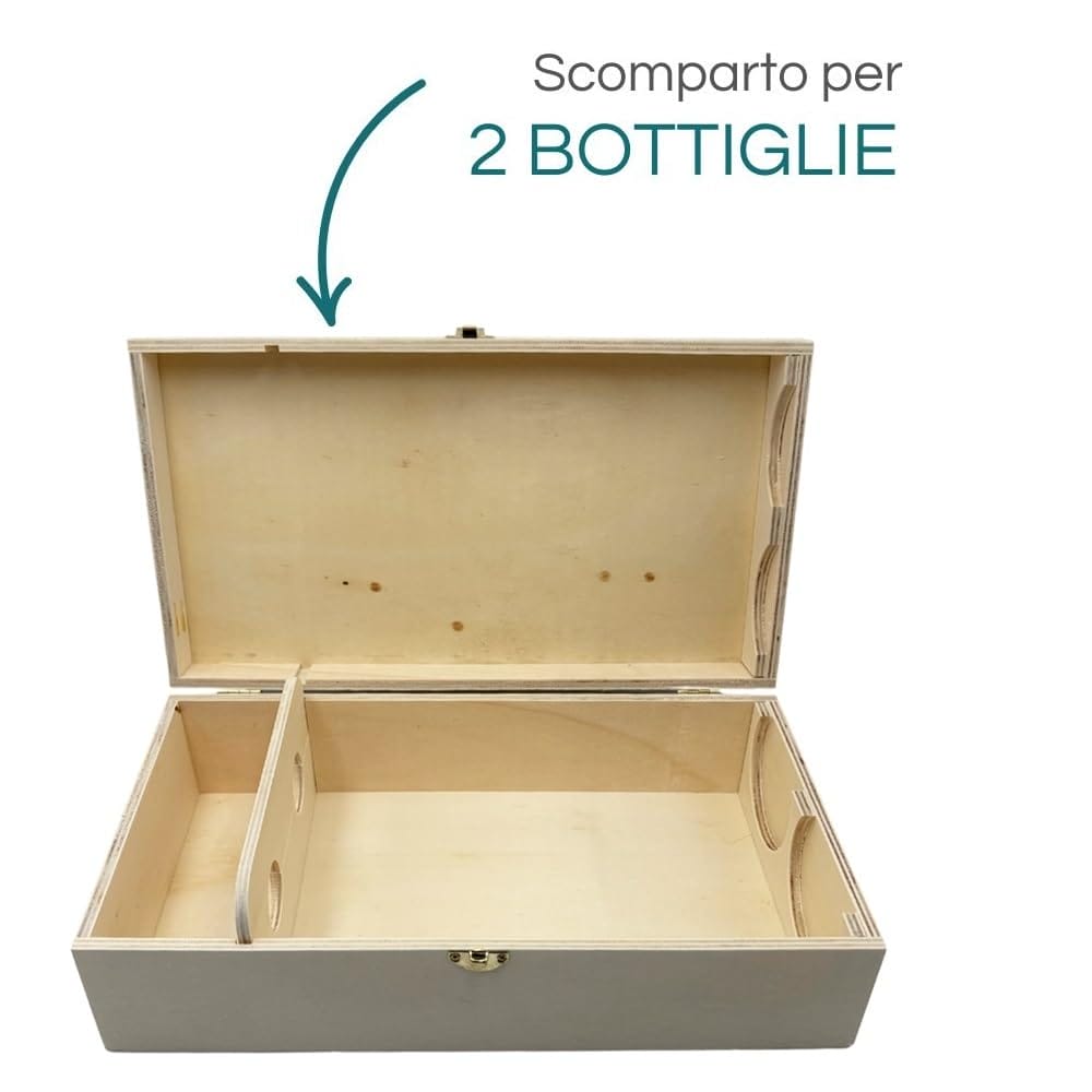 Scatola Porta Bottiglie di Vino in Legno per 2 bottiglie