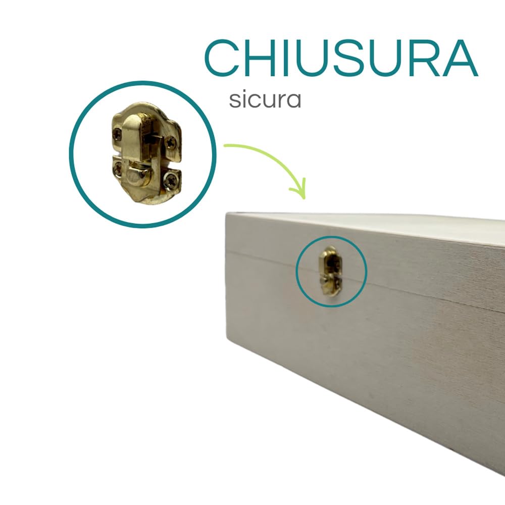 Scatola Porta Bottiglie per 2 Bottiglie di Vino in Legno Elegante e Resistente, con Coperchio e Chiusura di Sicurezza - Dimensioni: 35x19x10,5 cm