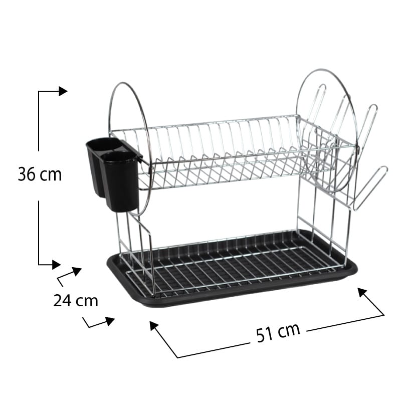 Scolapiatti da appoggio a 2 ripiani con vassoio e portaposate - Misura 51x24x36cm