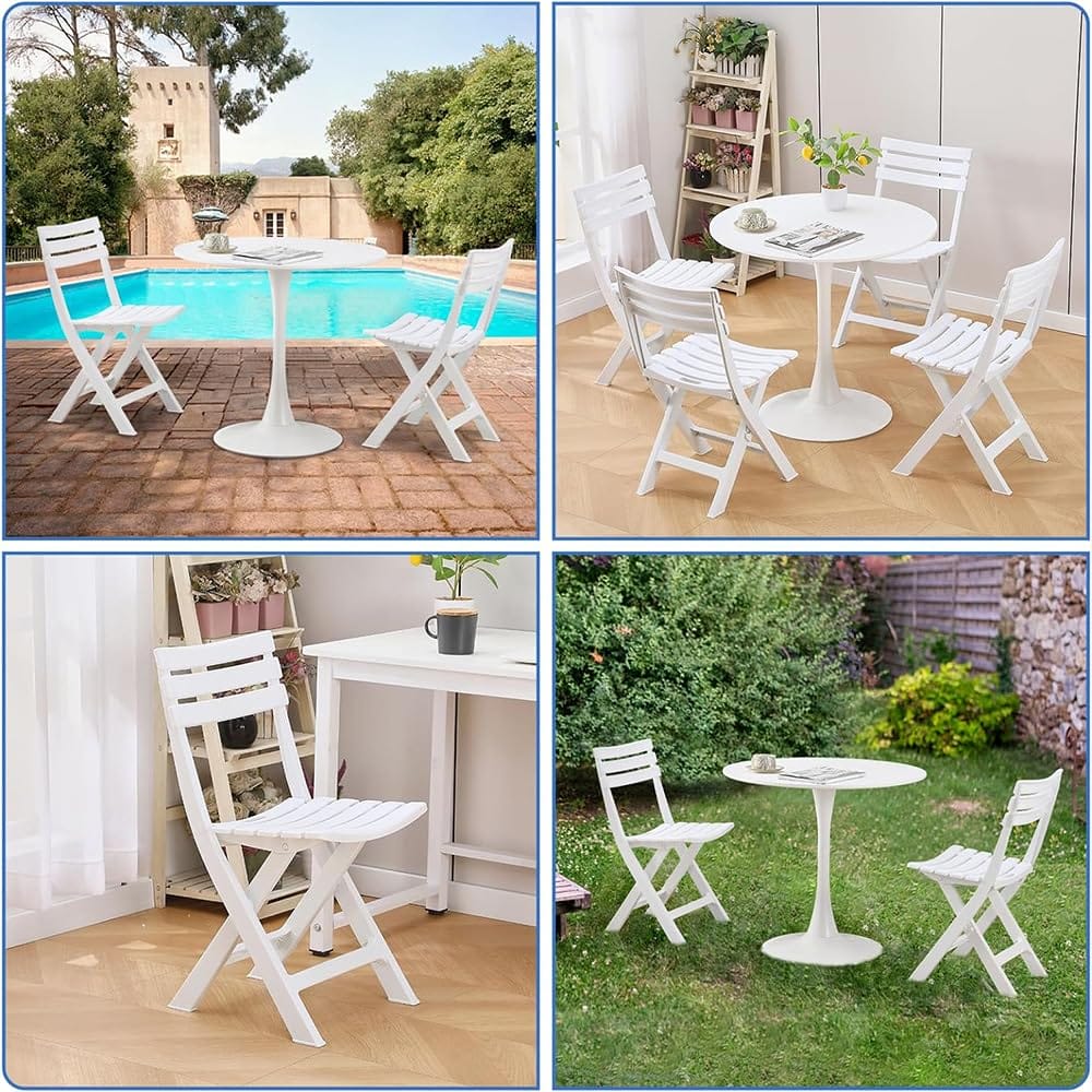 4 sedie da giardino pieghevoli in plastica resistente Bianca - Misura 41x44x78 cm - Sedia da esterno richiudibile senza braccioli