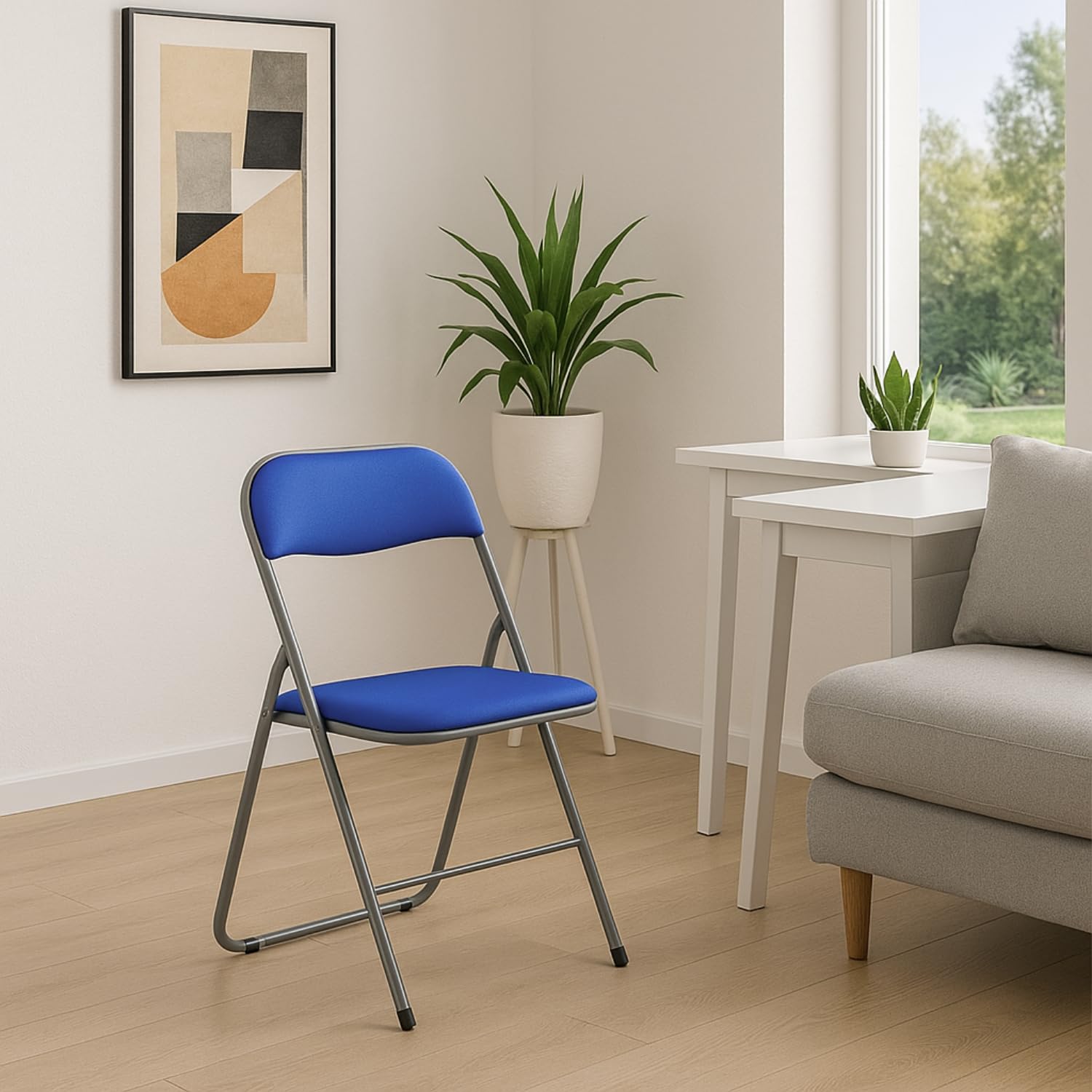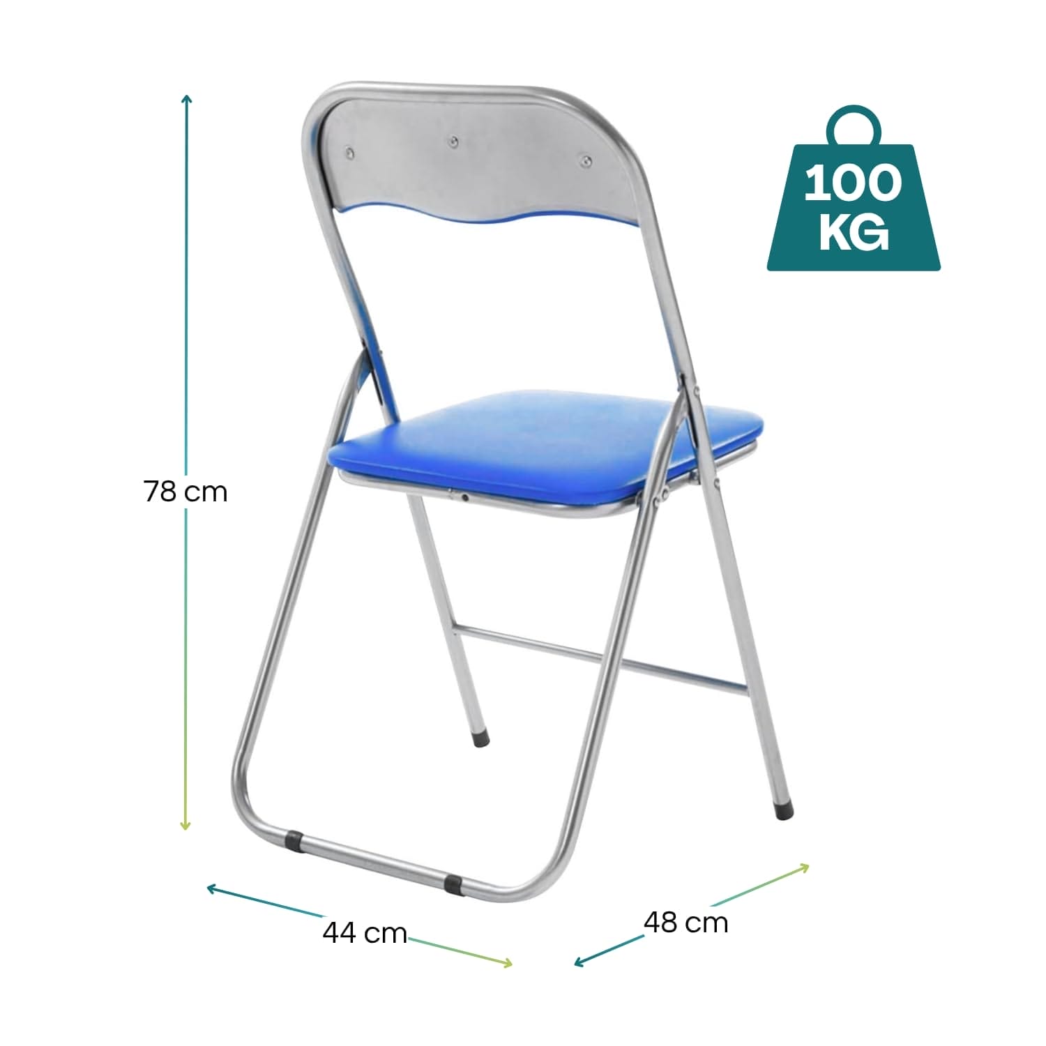6 Sedie pieghevoli, misura aperta 44x48x78 cm - Sedia slim salvaspazio con telaio in metallo e seduta in PVC Imbottita con piedi antiscivolo - Colore Blu