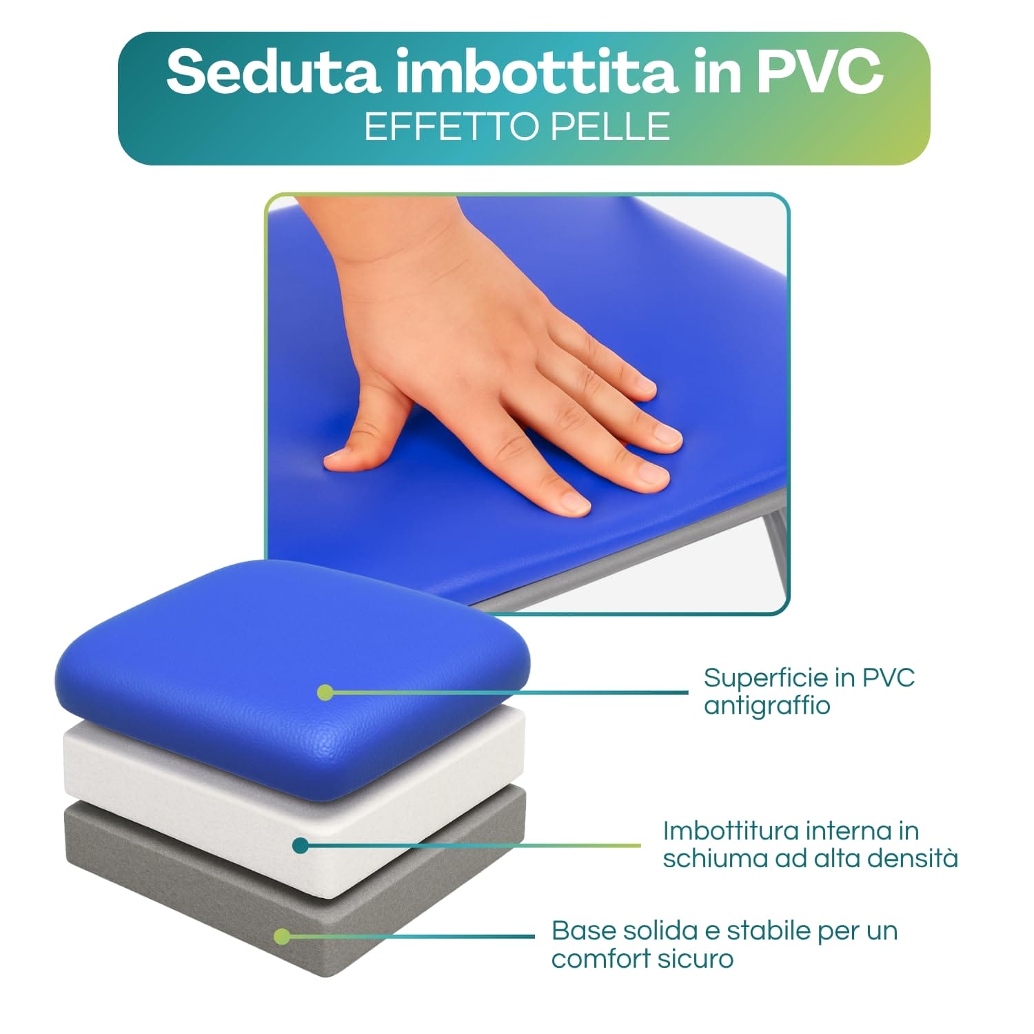 - Seduta e schienale rivestiti da robusto polipropilene (PVC)