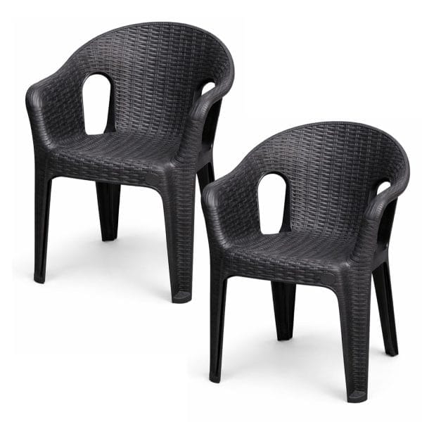 Set 6 Sedie Impilabili Effetto Rattan Antracite in Plastica con Braccioli e schienale Basso per Interni ed Esterni - Misura 56×47×81 cm