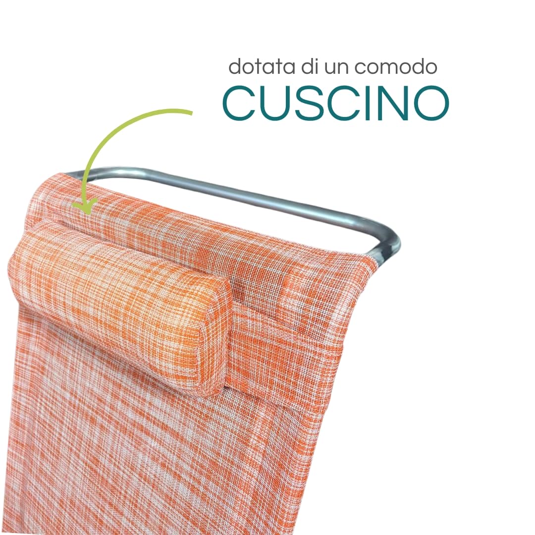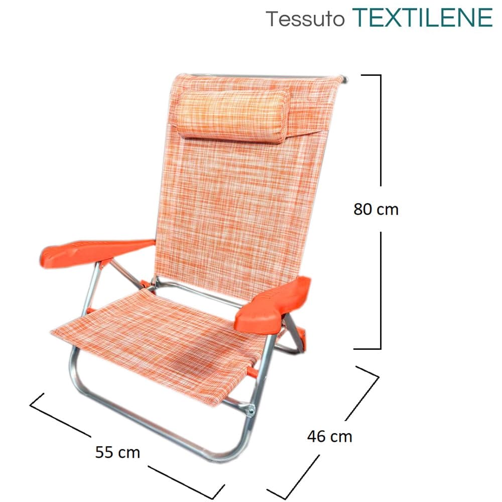Il tessuto in textilene non solo assicura durata nel tempo, ma è anche estremamente facile da pulire a mano, mantenendo sempre la sedia fresca e pronta all'uso. Disponibile in un elegante colore arancione, questa spiaggina non è solo pratica ma anche esteticamente gradevole.
