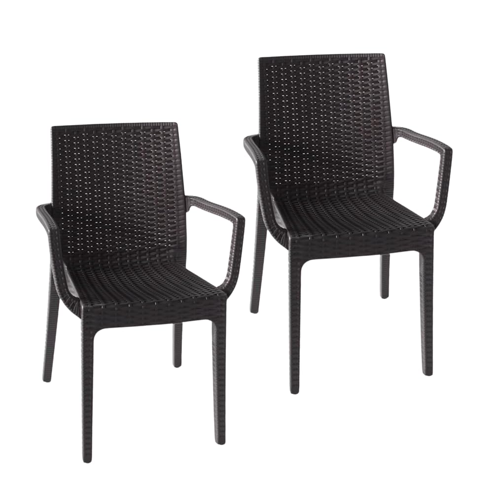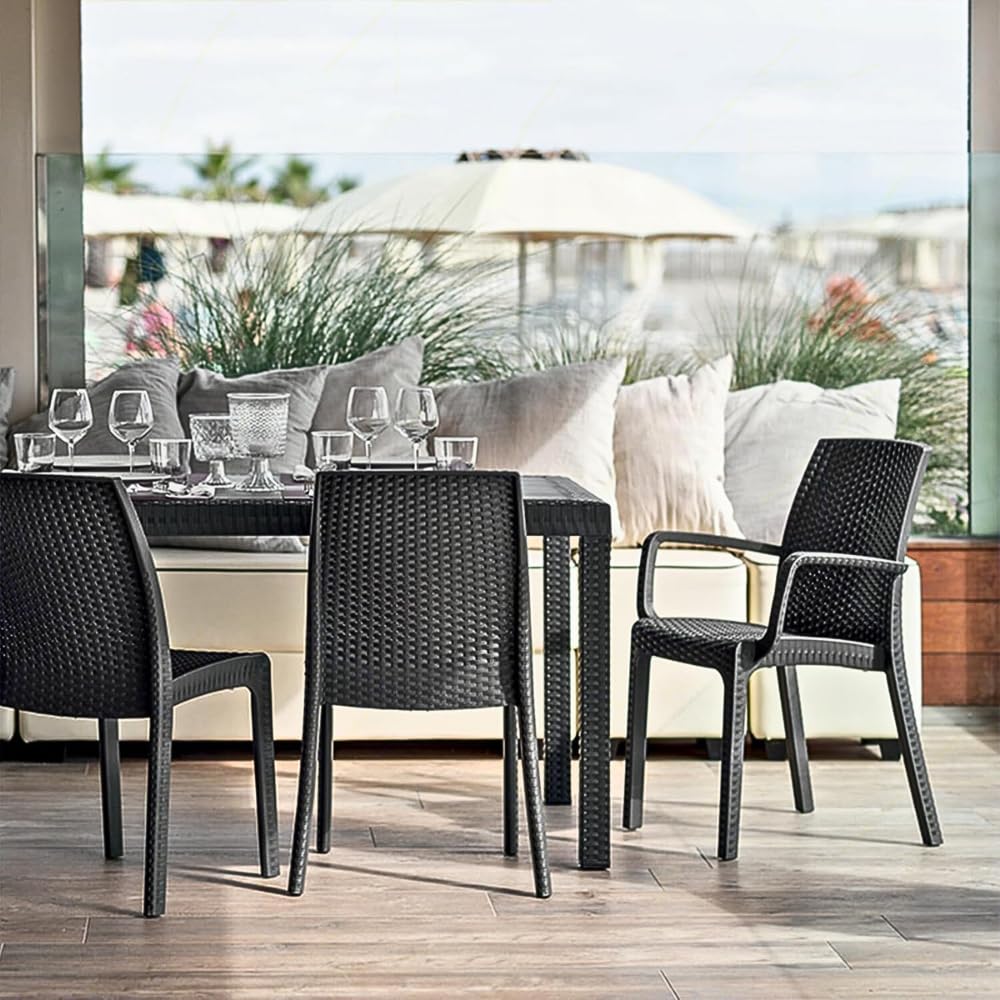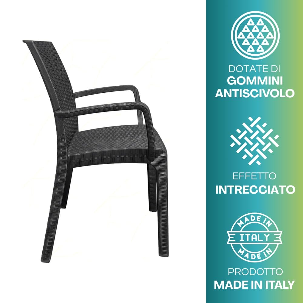 2 Sedie da giardino effetto Rattan in polipropilene con braccioli - Misura 56x46x51 cm - Sedia da esterno impilabile color Antracite