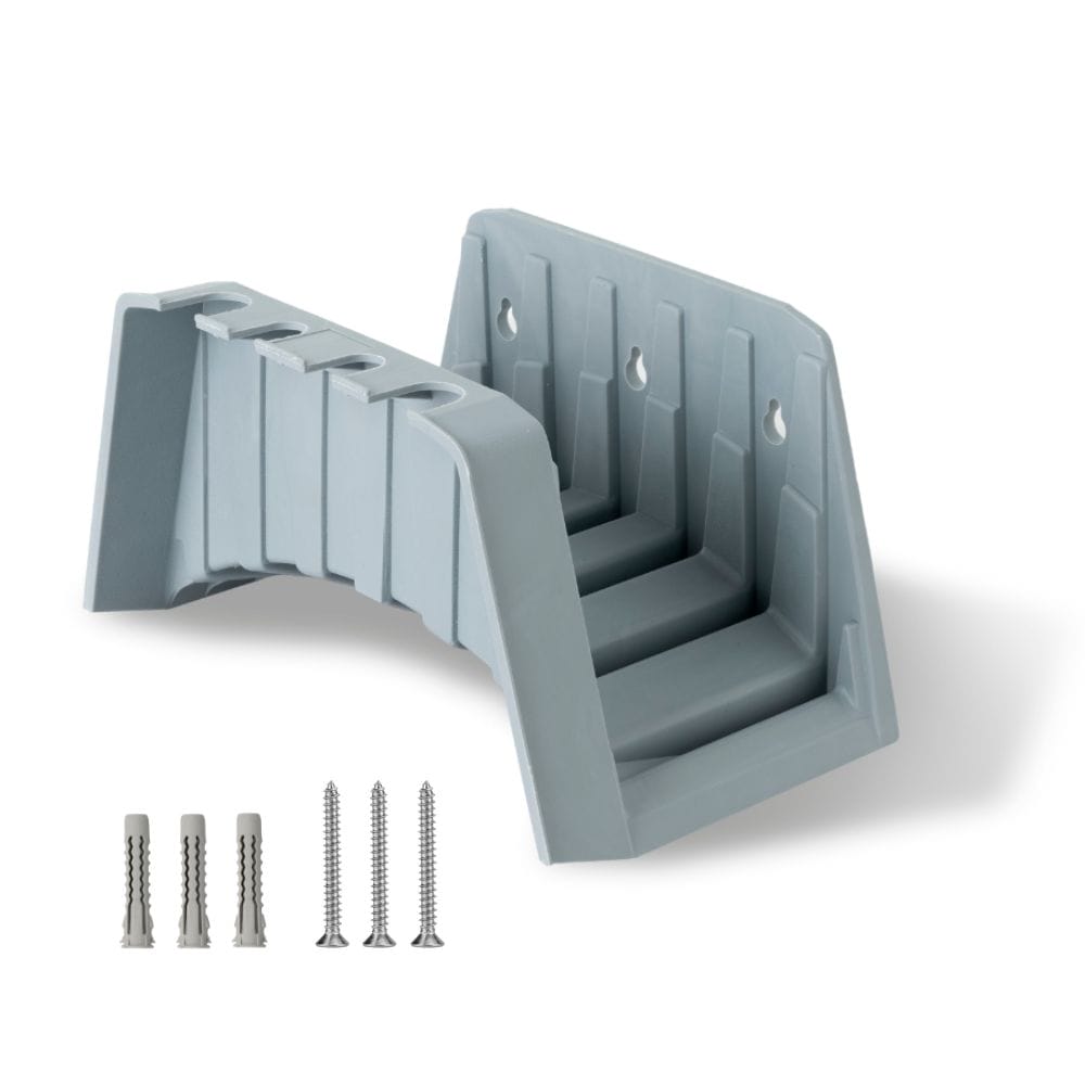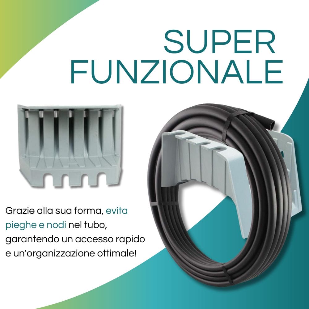 Spalla porta tubi idraulici da giardino in plastica con agganci per accessori e set da fissaggio - (C)