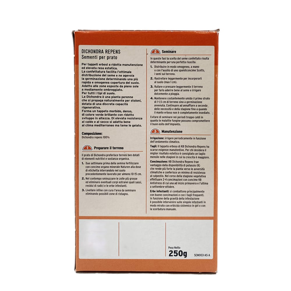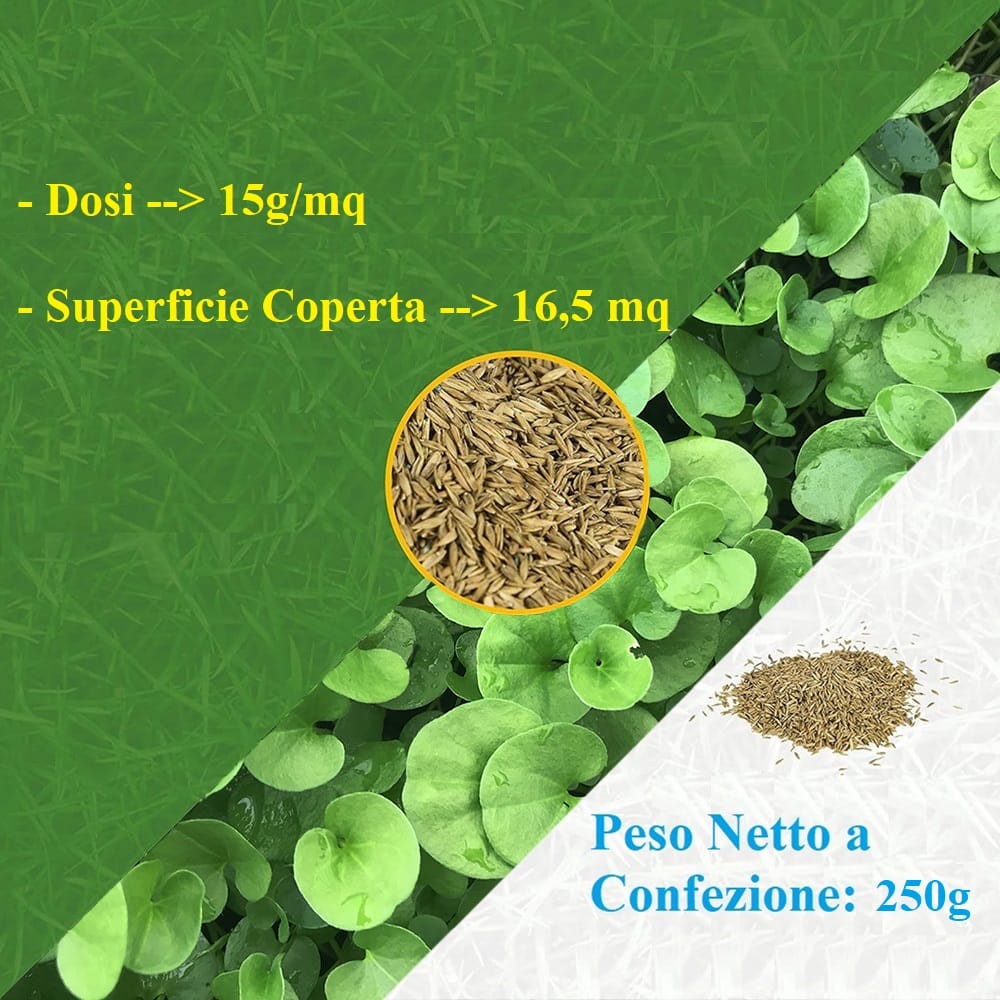 Semi per prato dichondra repens da 250g, semina per prato ad uso estetico ed aiuole - Copertura 16m²