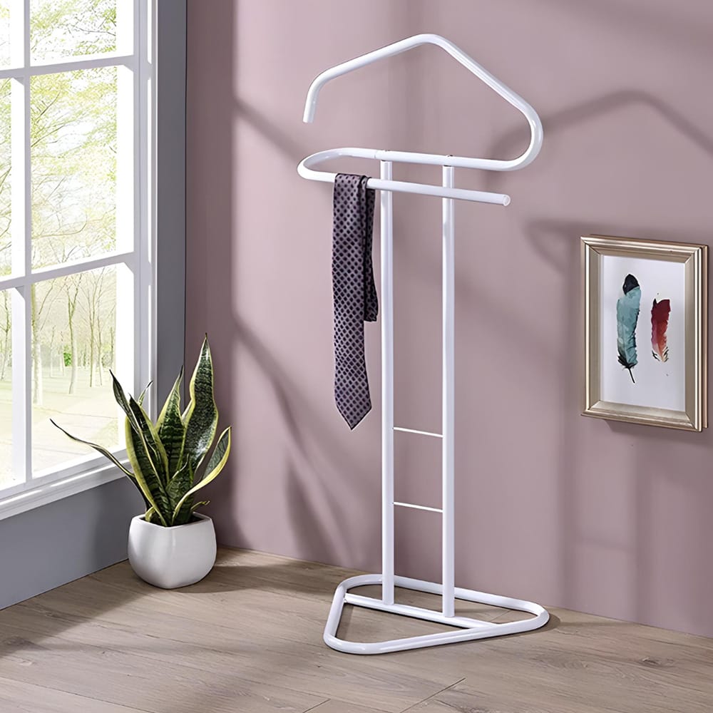 Il Servo Muto Da Camera In Metallo, conosciuto anche come uomo morto appendiabiti, è un accessorio elegante e funzionale, perfetto per mantenere la tua stanza ordinata e i tuoi abiti impeccabili. Con un design moderno e due montanti robusti, questo omino appendiabiti fornisce ampio spazio per appendere giacche, cappotti e pantaloni senza preoccuparsi di pieghe indesiderate. La base solida integrata consente praticità e flessibilità nel posizionamento.