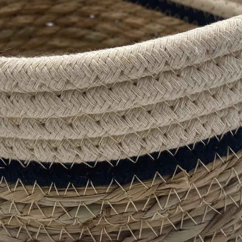 Set 2 cestini rotondi in corda di Cotone e Giacinto da 22x18x10 cm - Cestini portaoggetti decorativi per camera, bagno Organizer fasciatoio per bambini
