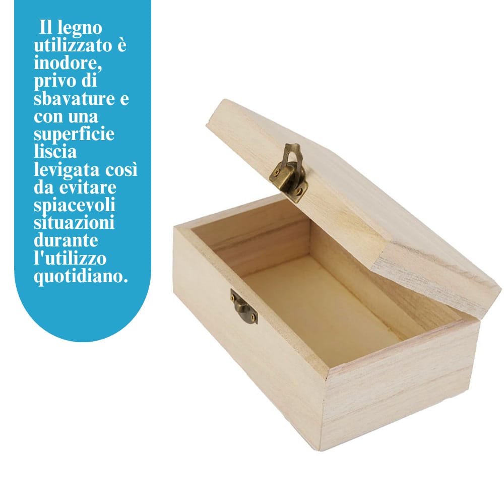 TOP QUALITY - i cofanetti sono realizzati in legno naturale di altissima qualità rendendo il prodotto resistente e duraturo nel tempo. Il legno utilizzato è inodore, privo di sbavature e con una superficie liscia levigata così da evitare spiacevoli situazioni durante l'utilizzo quotidiano.