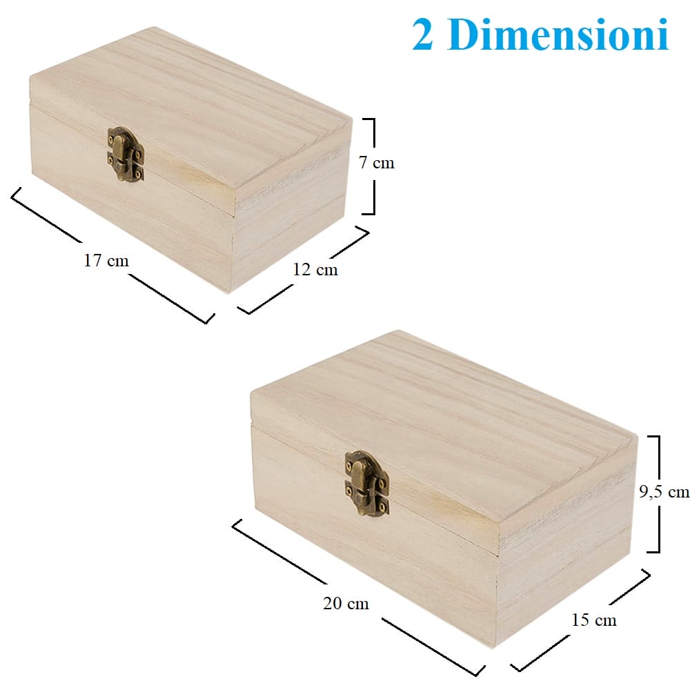 Set 2 Scatole Portagioie in legno di 2 dimensioni diverse, ideali per organizzare e tenere in ordine i tuoi gioielli, bracciali, collane, orecchini o semplicemente per riporre i tuoi ricordi.