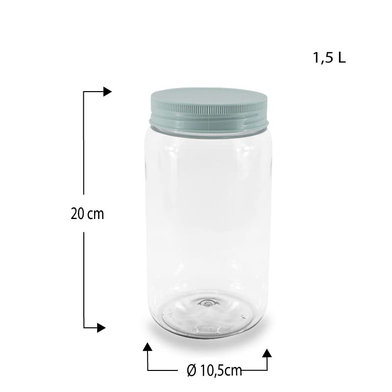Set 3 Barattoli in plastica per alimenti rotondo da 1,5 Litri