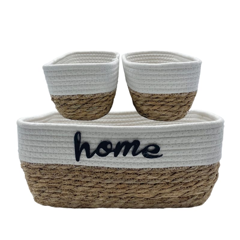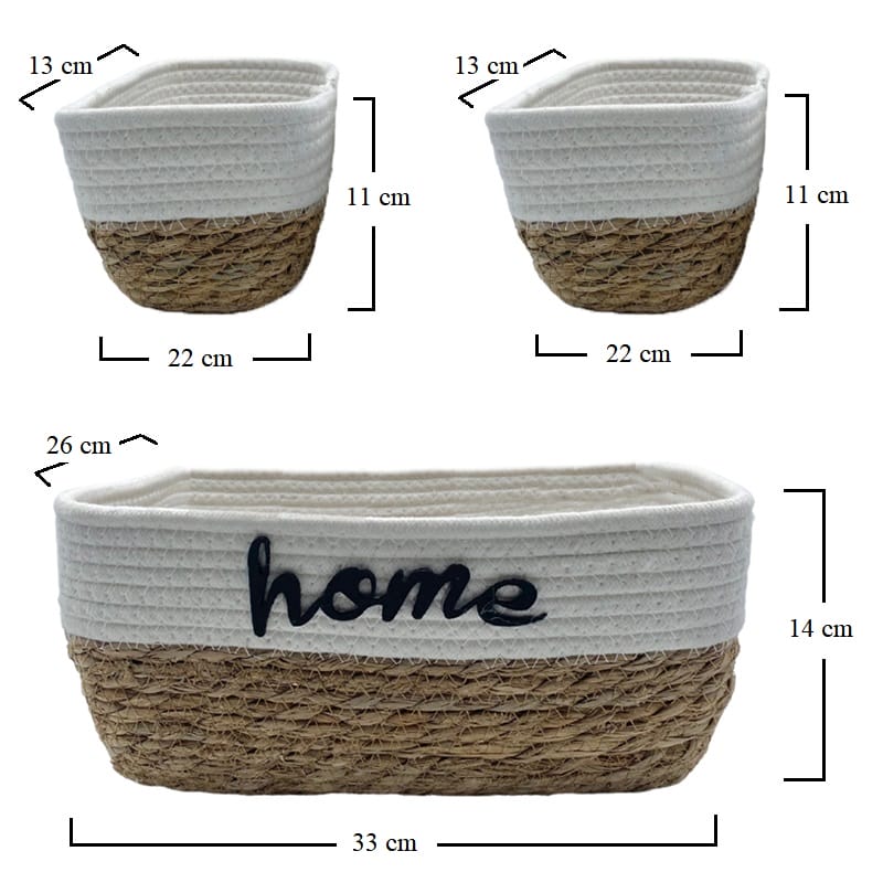3 Cestini rettangolari in corda con coperchio impilabili