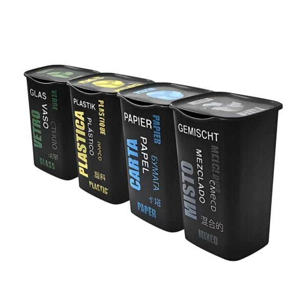 Set di 4 pattumiere da 50 Litri per raccolta differenziata, realizzate in plastica robusta con coperchio antidore e design impilabile