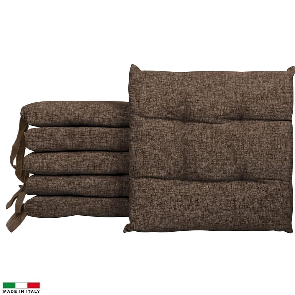 Set di 6 Cuscini per sedie in diversi colori a tinta unita, con misura pari a 40x40 cm, ideali per rivestire e proteggere le sedie della tua cucina o sala da pranzo. Perfetti per migliorare l'esperienza di seduta e aggiungere un tocco di eleganza al tuo ambiente domestico. Prodotto Made in Italy.I nostri cuscini per sedie sono disponibili nelle seguenti colorazioni: