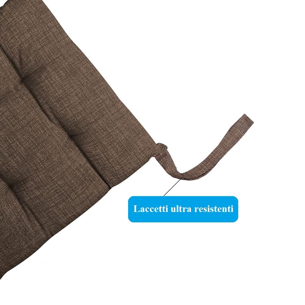 - LACCI DI FISSAGGIO - ogni cuscino presenta 2 lacci sulla parte posteriore così da poterlo fissare alla sedia della cucina evitando scivolamenti indesiderati. Con una dimensione standard il cuscino si adatta perfettamente a qualsiasi sedia in commercio.