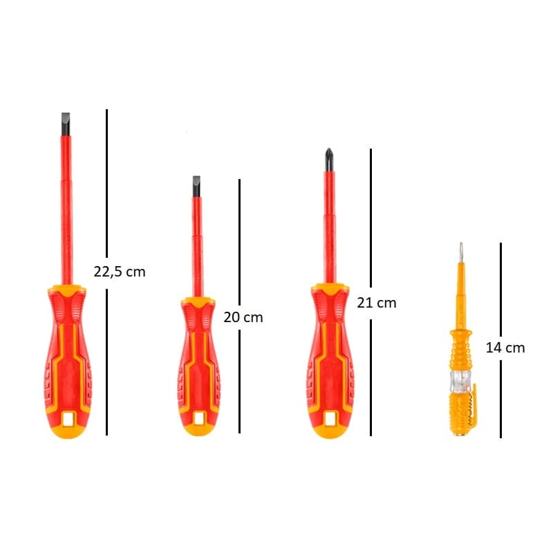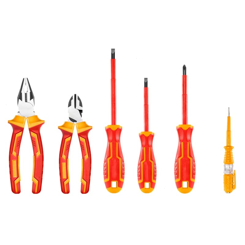 6 Utensili isolati da elettricista in SET comprendente cercafase, cacciaviti e pinze isolati